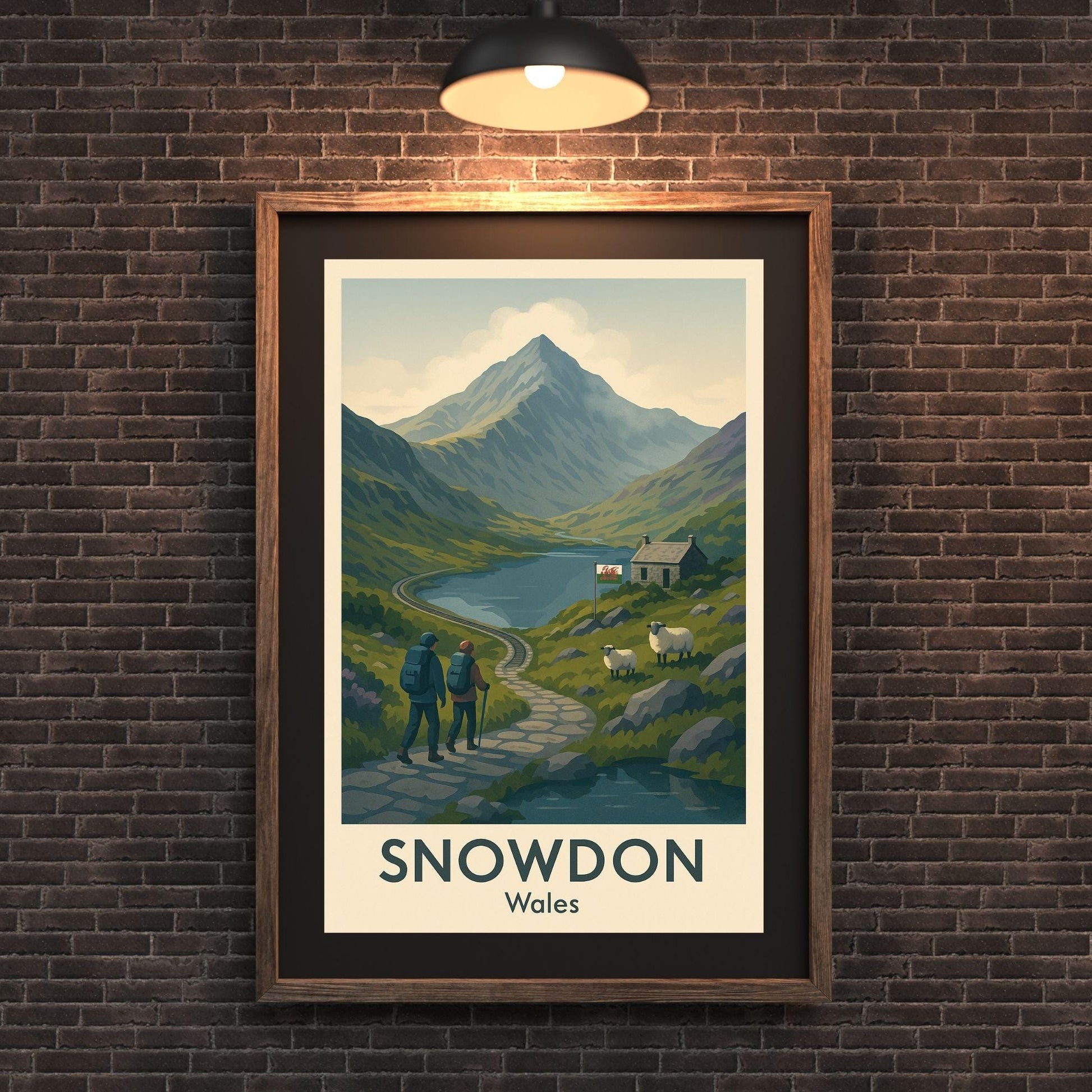 Snowdon Poster Wall Art, Snowdonia Mountain Climbing Print, Home Décor Gift for Wedding & Birthday, Three Peaks Challenge North Wales Poster