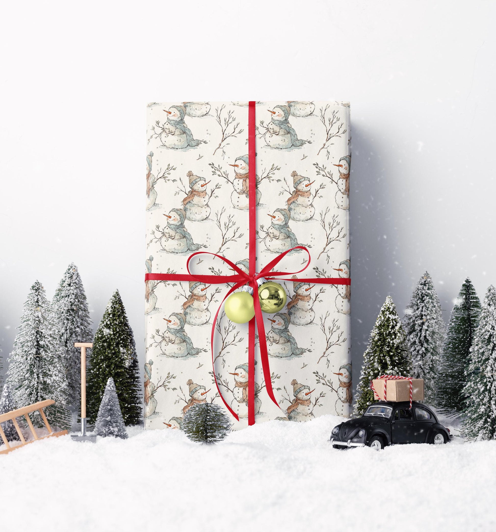 Snowman Wrapping Paper Roll for Christmas, Festive Holiday Gift Wrap with Winter Characters #5