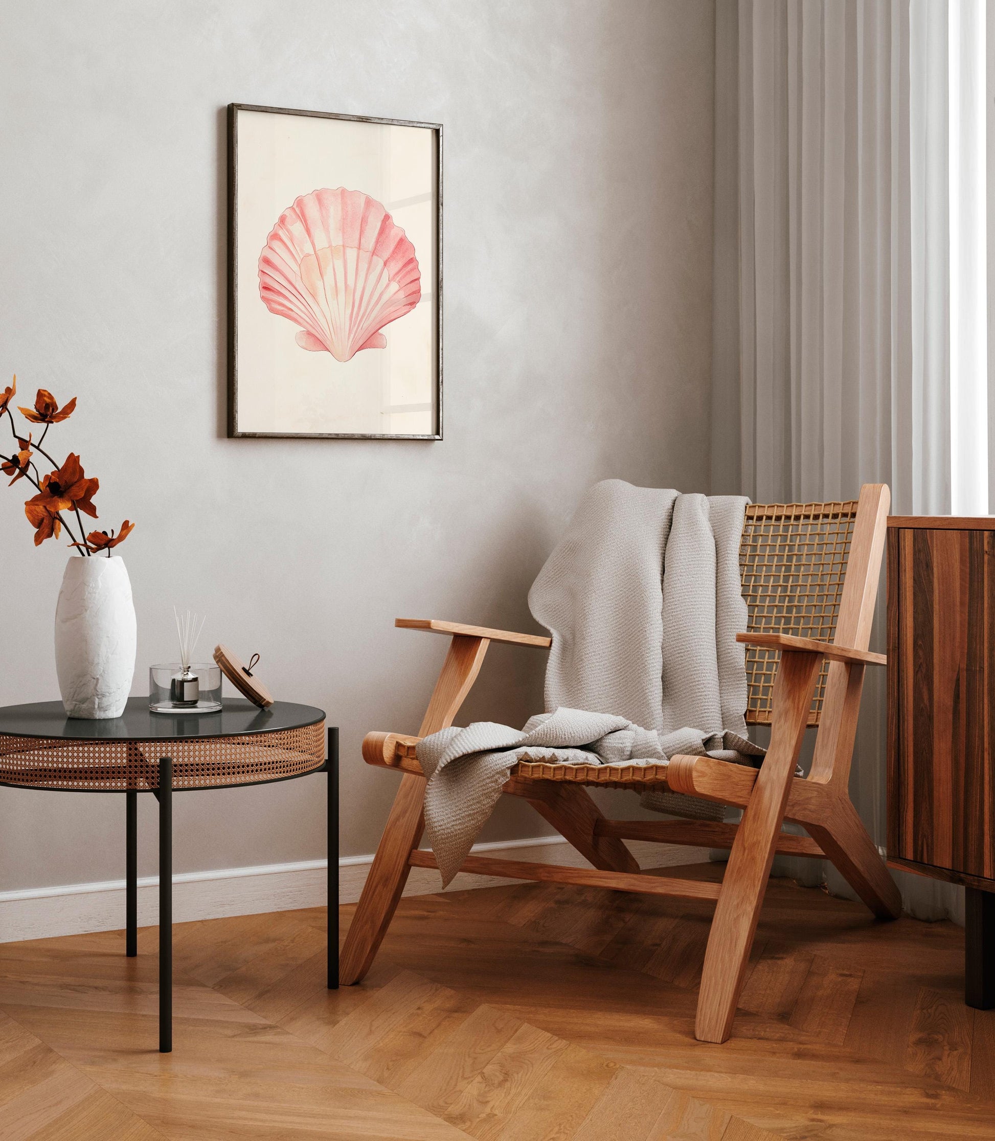 Soft pink seashell print, Beachy room decor, Ocean surf poster, Coastal granddaughter, Beach house, College coconut girl, Preppy dorm decor