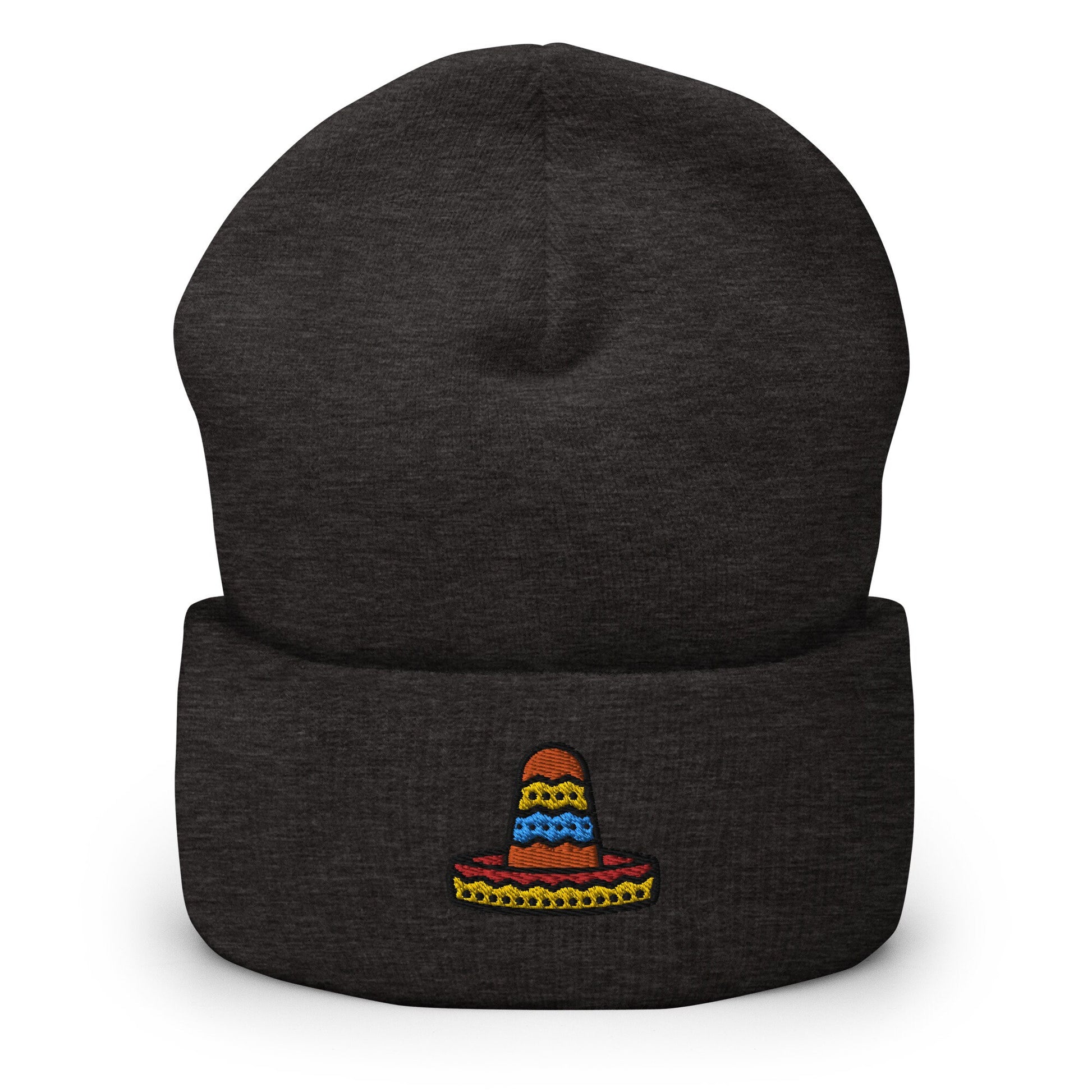 Sombrero Mexico Cinco De Mayo Fiesta Embroidered Beanie, Handmade Cuffed Knit Unisex Slouchy Adult Winter Hat Cap Gift