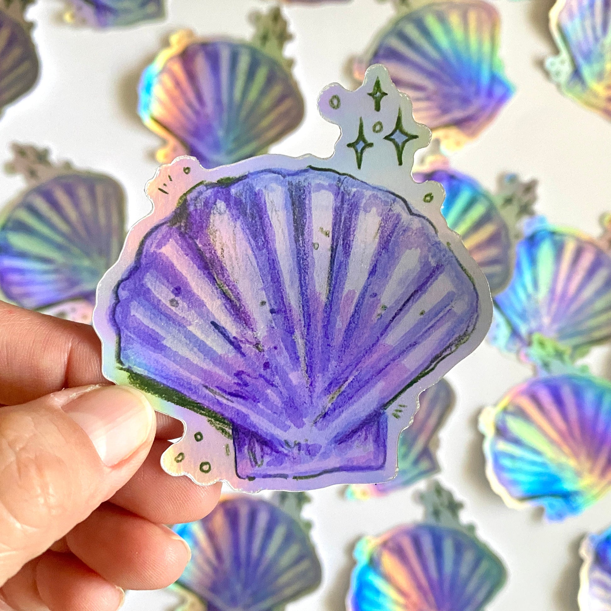 Sparkle Sea Shell | 3" Holographic Sticker Decal | Waterproof Weatherproof | Ocean Seashells