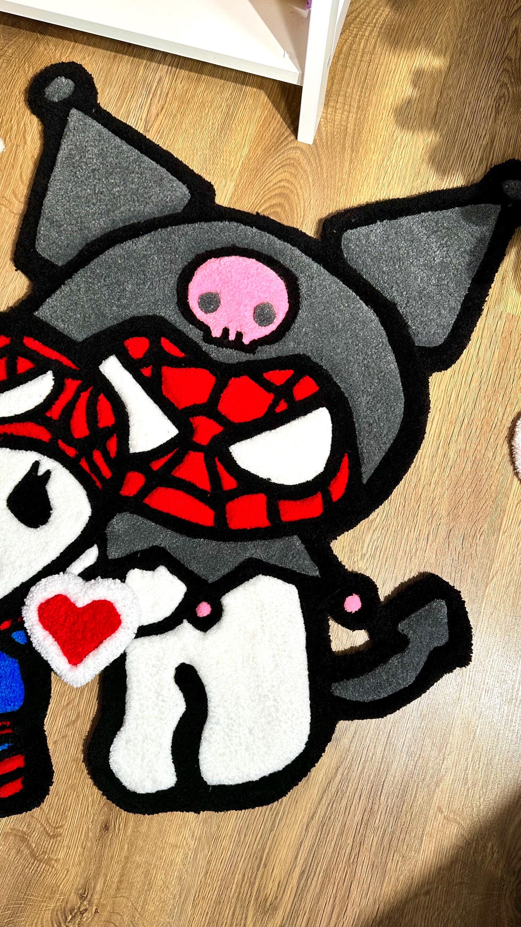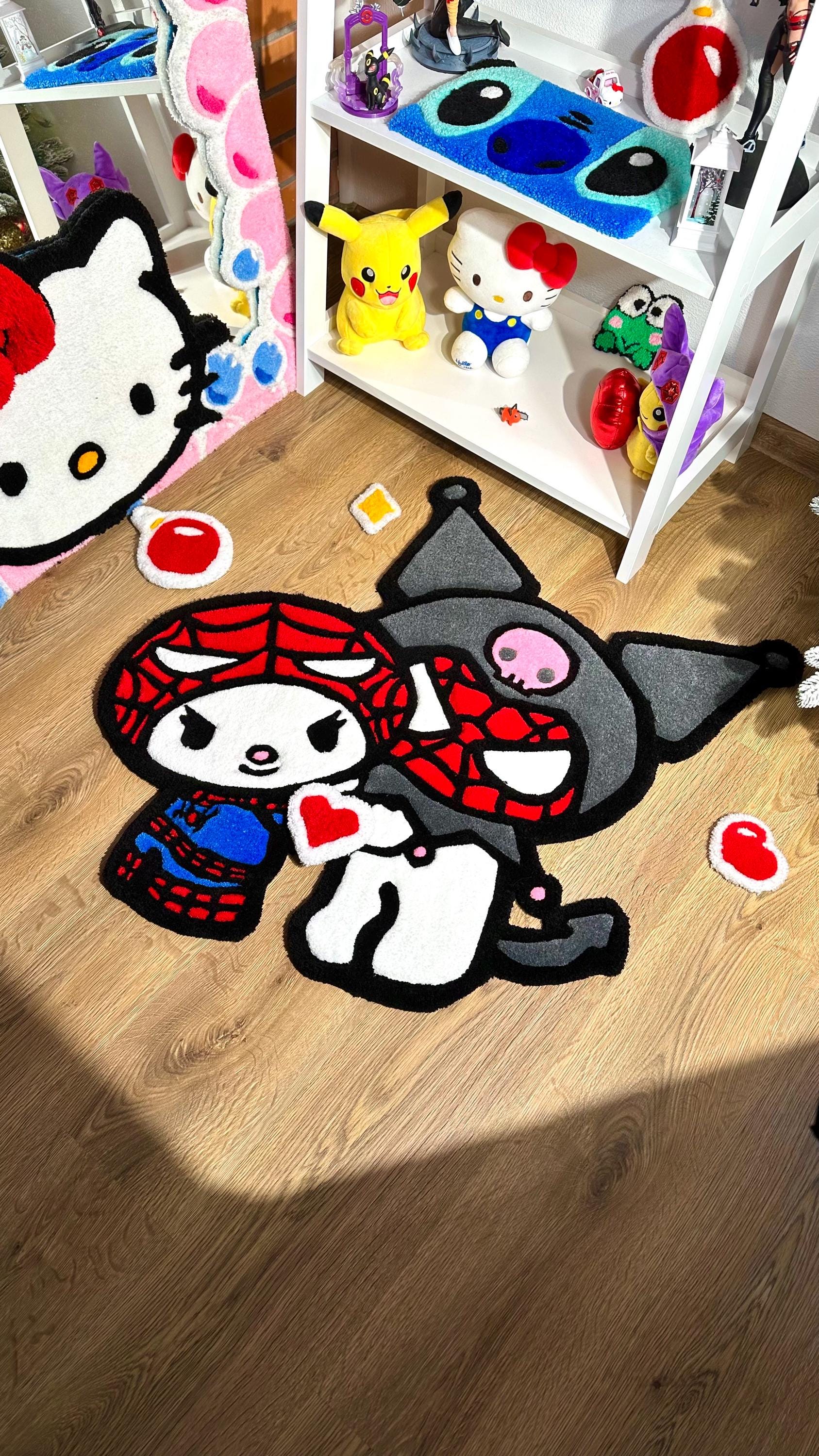 Spider x Custom Kitty Rug – Puffy Tufted Crossover Carpet, Cute Handmade Decor, Fluffy Anime Gift Rug for Girls Room or Bedroom Floor