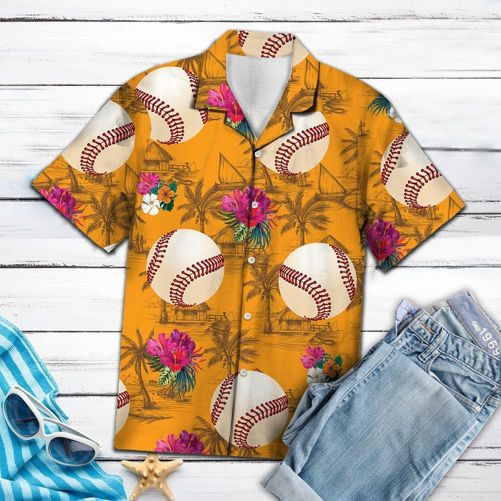 Sporty Baseball Tropical Flowers Pattern Hawaiian Shirt,Hawaiian Shirt Gift, Christmas Gift