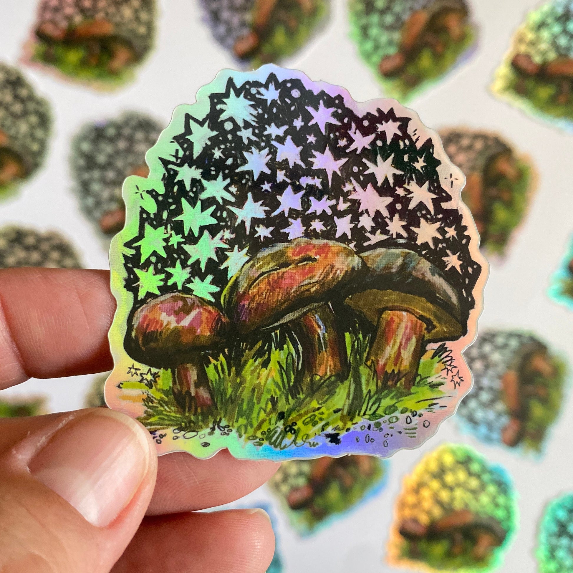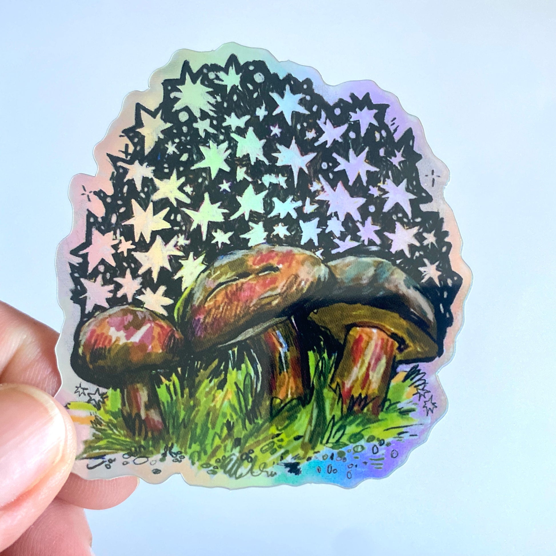 Starry Shrooms | 3" Holographic Sticker Decal | Waterproof Weatherproof | Mushrooms Mystic