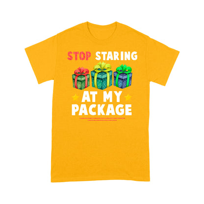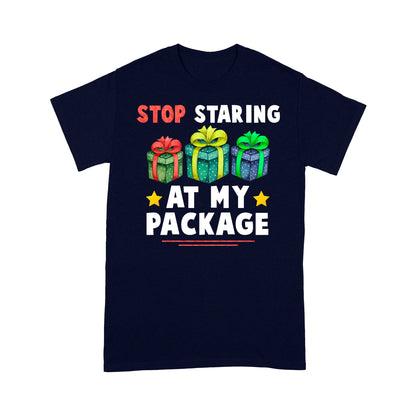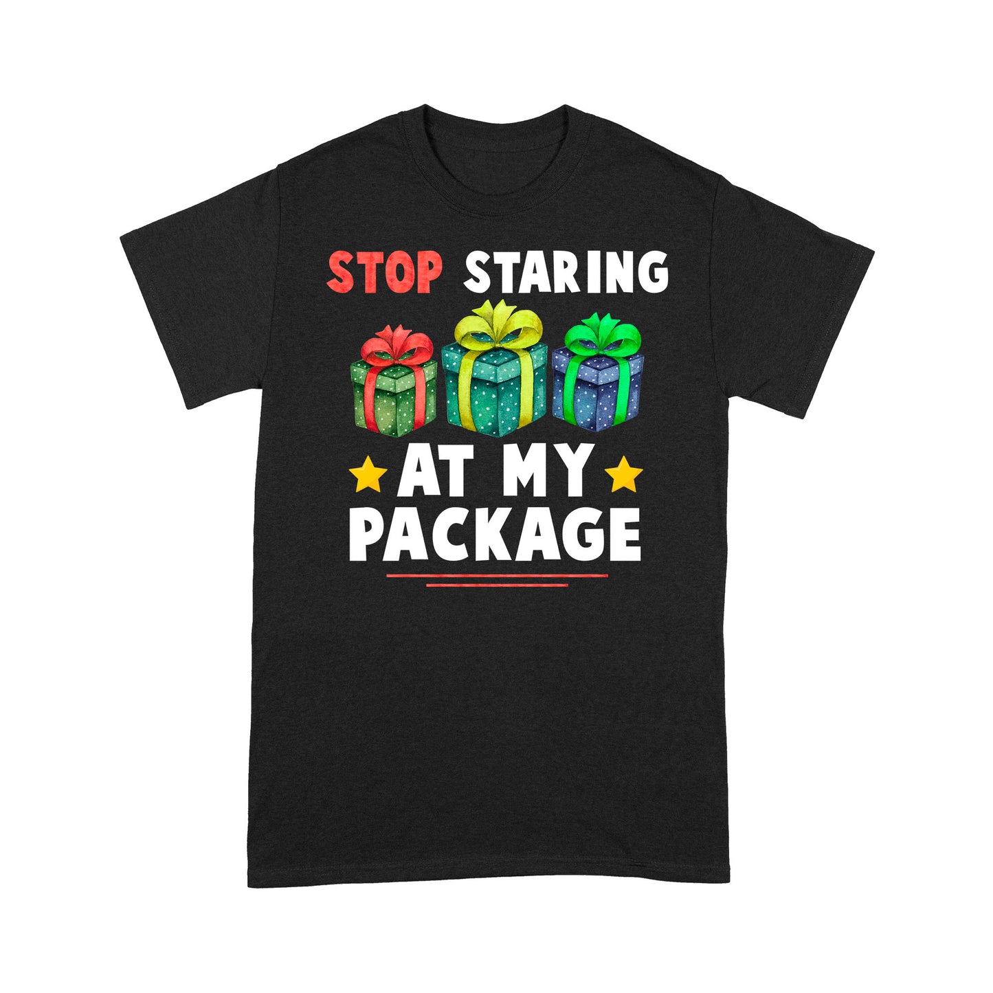 Stop Staring At My Package Funny Christmas - Standard T-shirt Tee Shirt Gift For Christmas