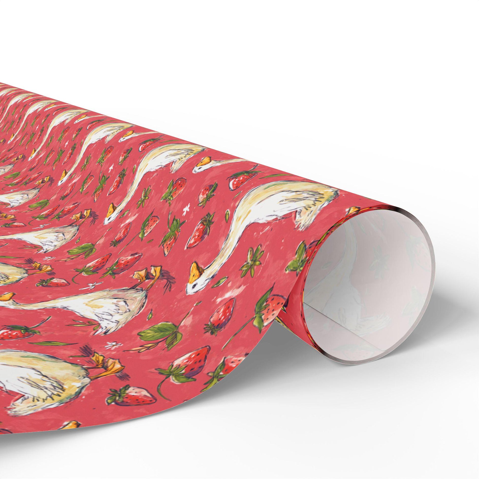 Strawberry Gooses Wrapping Paper for Little Girl Birthday | Adorable Berry Gift Wrap Sheets | Sweet Fruit Party Decor