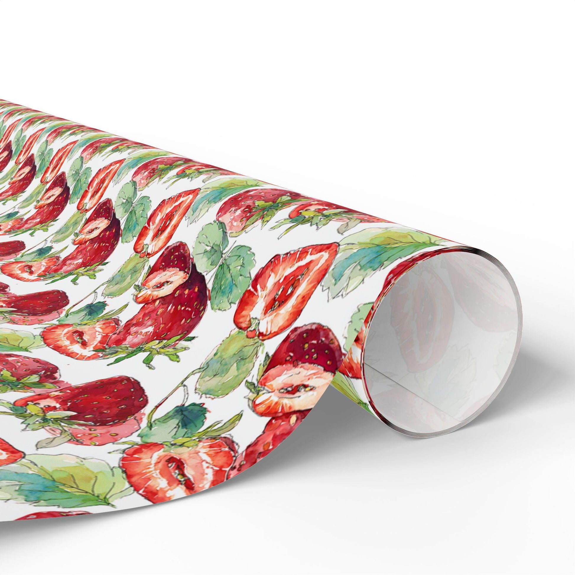 Strawberry Wrapping Paper for Bridesmaid Gifts | Fun Berry Gift Wrap for Wedding Day | Pink Summer Fruit Party Decor