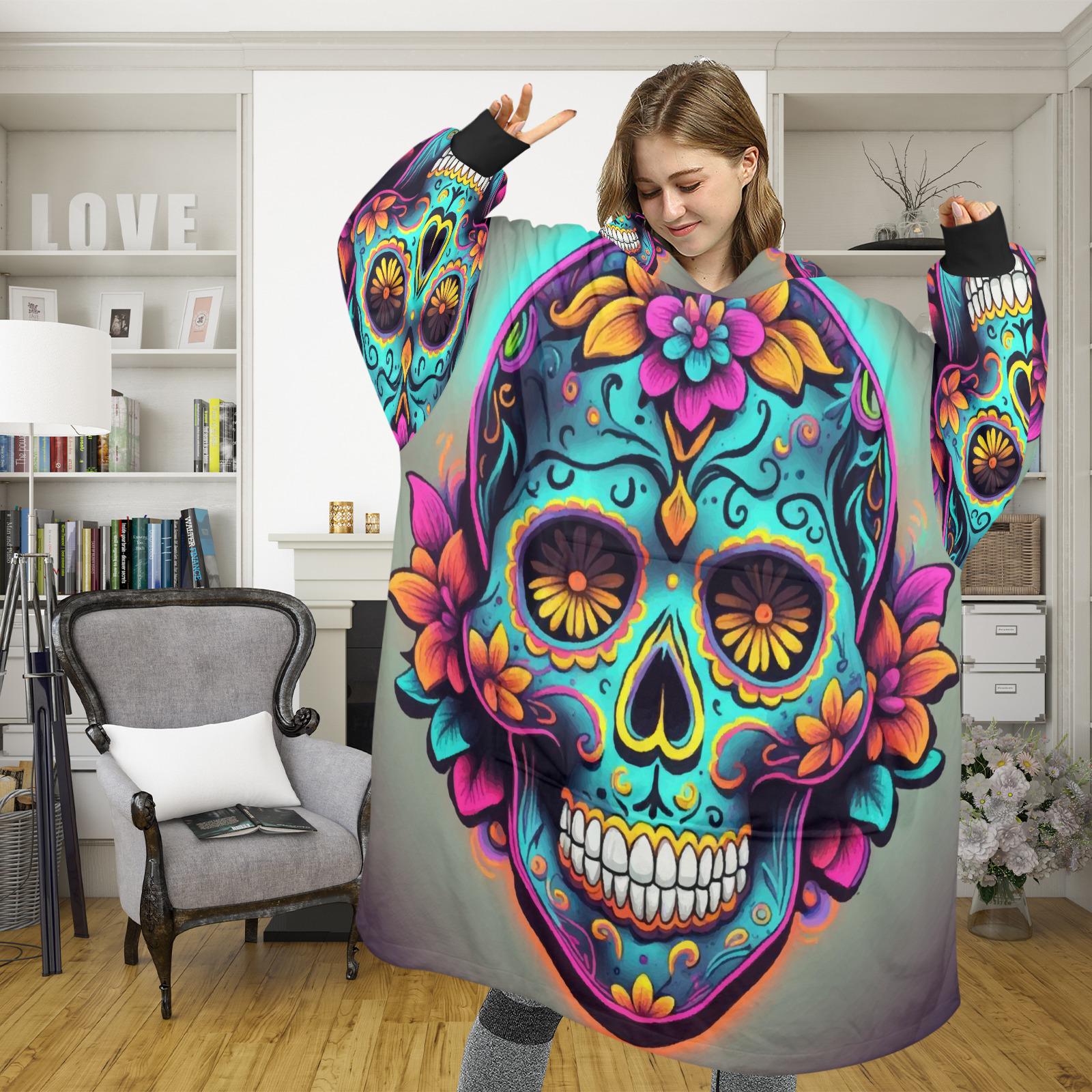 Sugar Skull Blanket Hoodie Día De Los Muertos Chicano Art