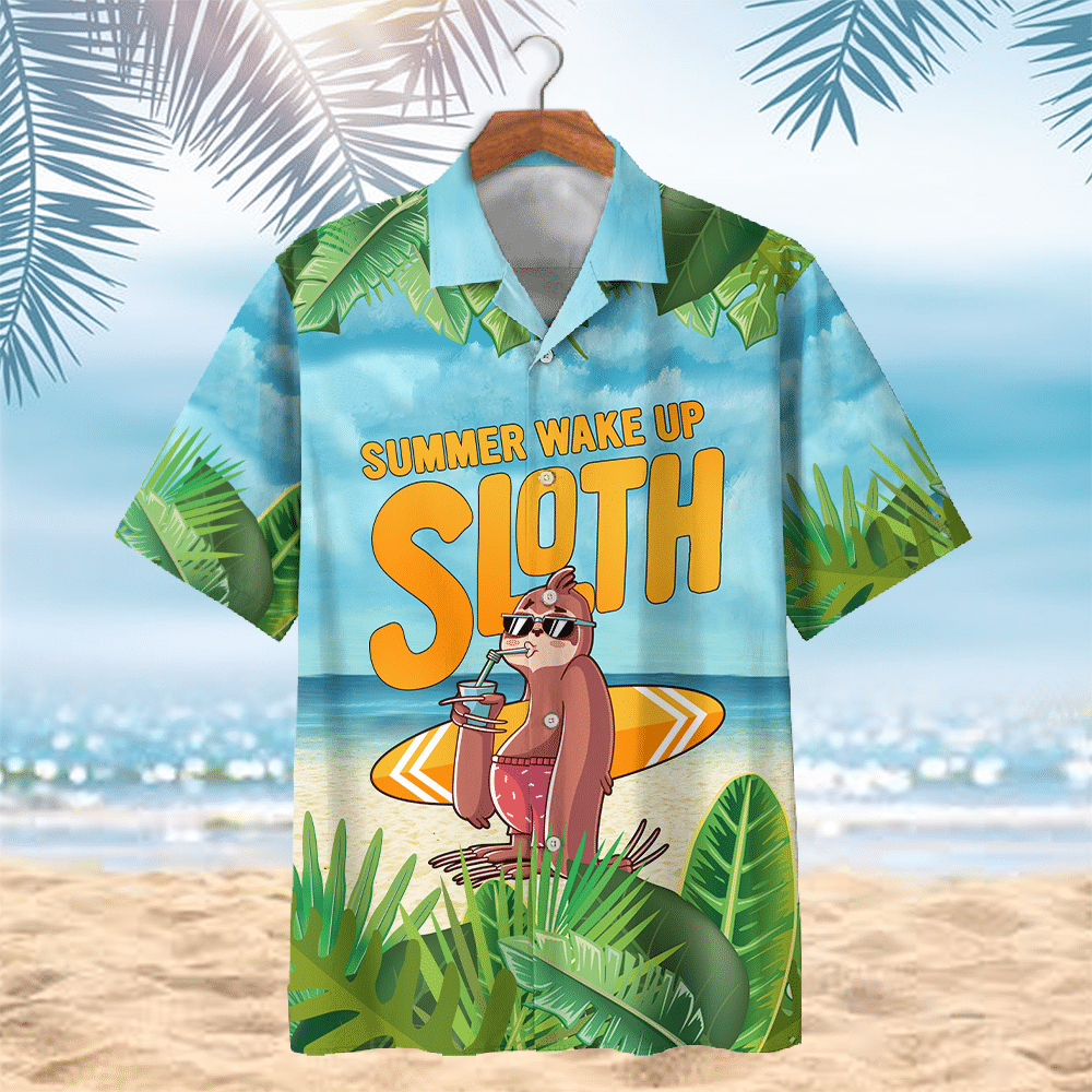 Summer Wake Up Sloth Design Hawaiian Shirt,Hawaiian Shirt Gift, Christmas Gift