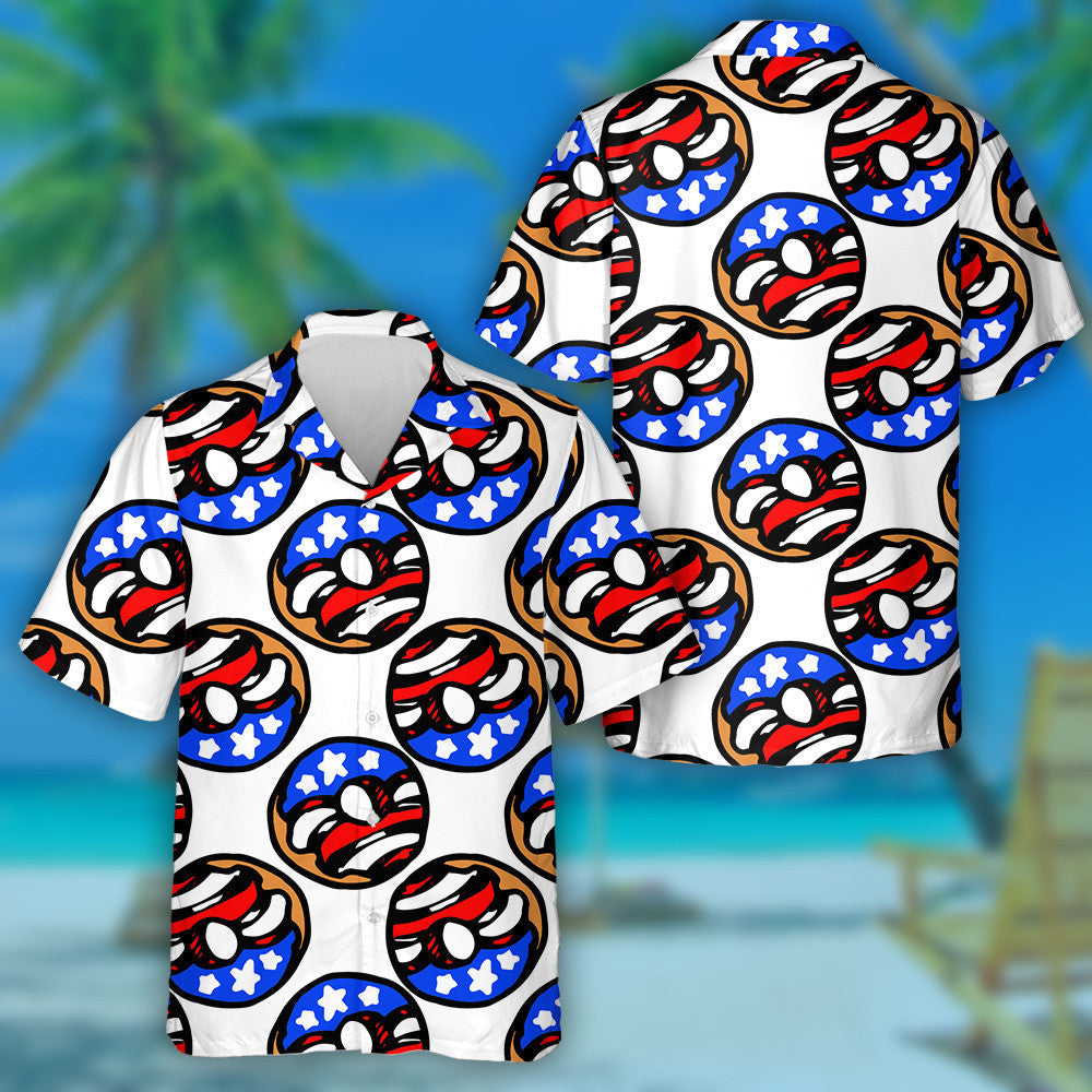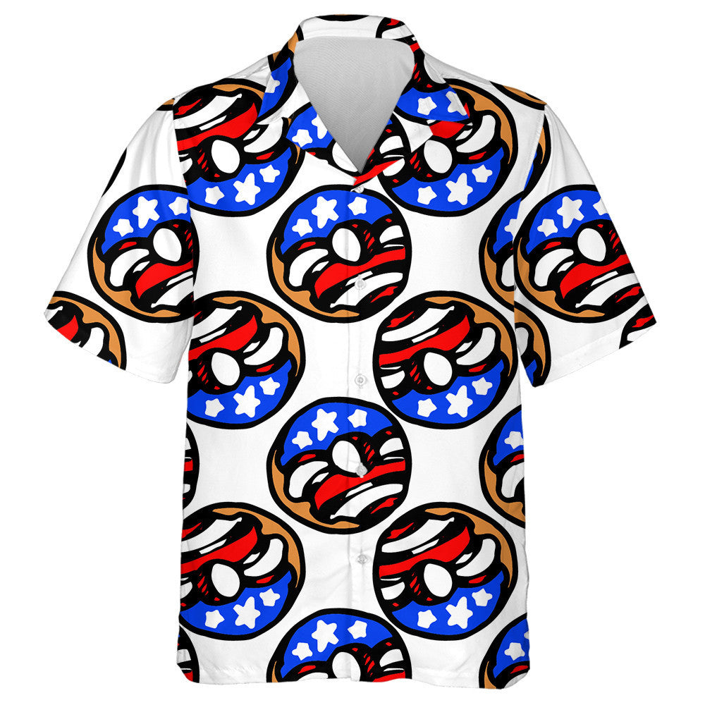 Sweet Donut With Icing American Flag Symbols Pattern Hawaiian Shirt, Hawaiian Shirt Gift, Christmas Gift