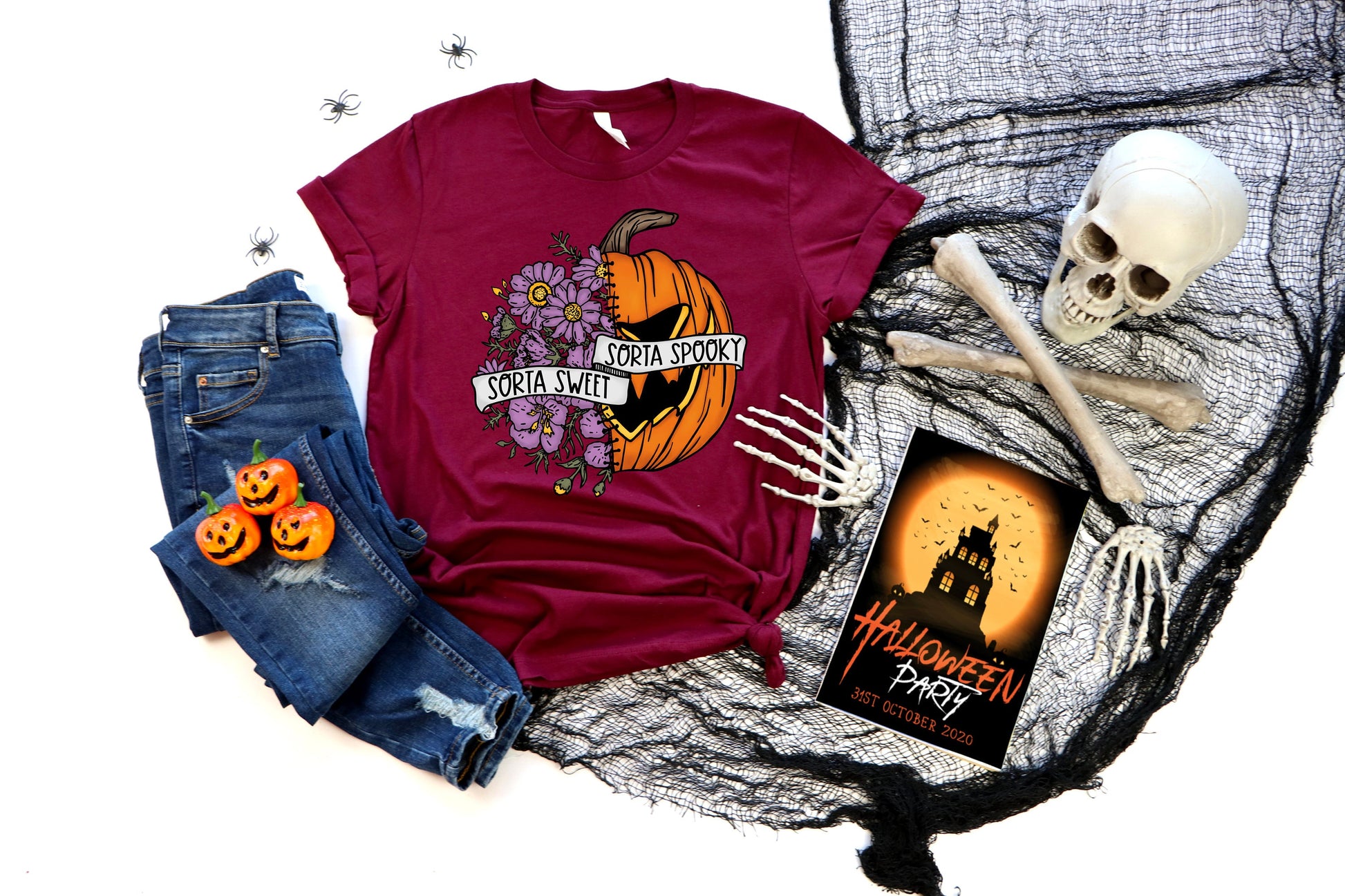 Sweet Sorta Spooky Shirt, Flower Pumpkin Shirt, Halloween PumpkinTee, Horror Shirt, Halloween Party Gift, Sarcasm Tee, Spooky Season T Shirt