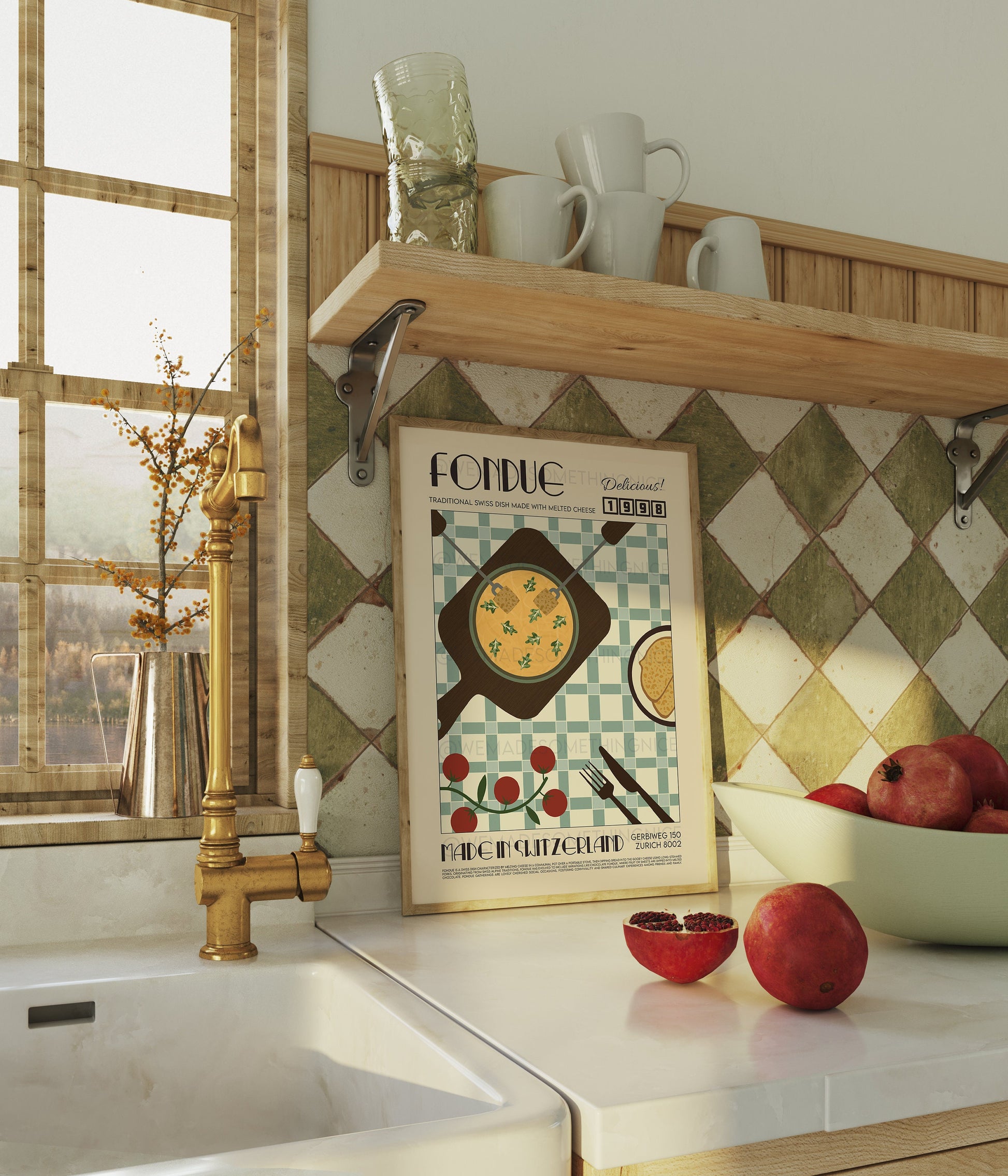 Swiss Fondue Poster, Kitchen Poster, Kitchen Print, Food Print, Modern Kitchen Decor, Retro Poster, Pop Art, Kitchen Art, Exhibition Poster