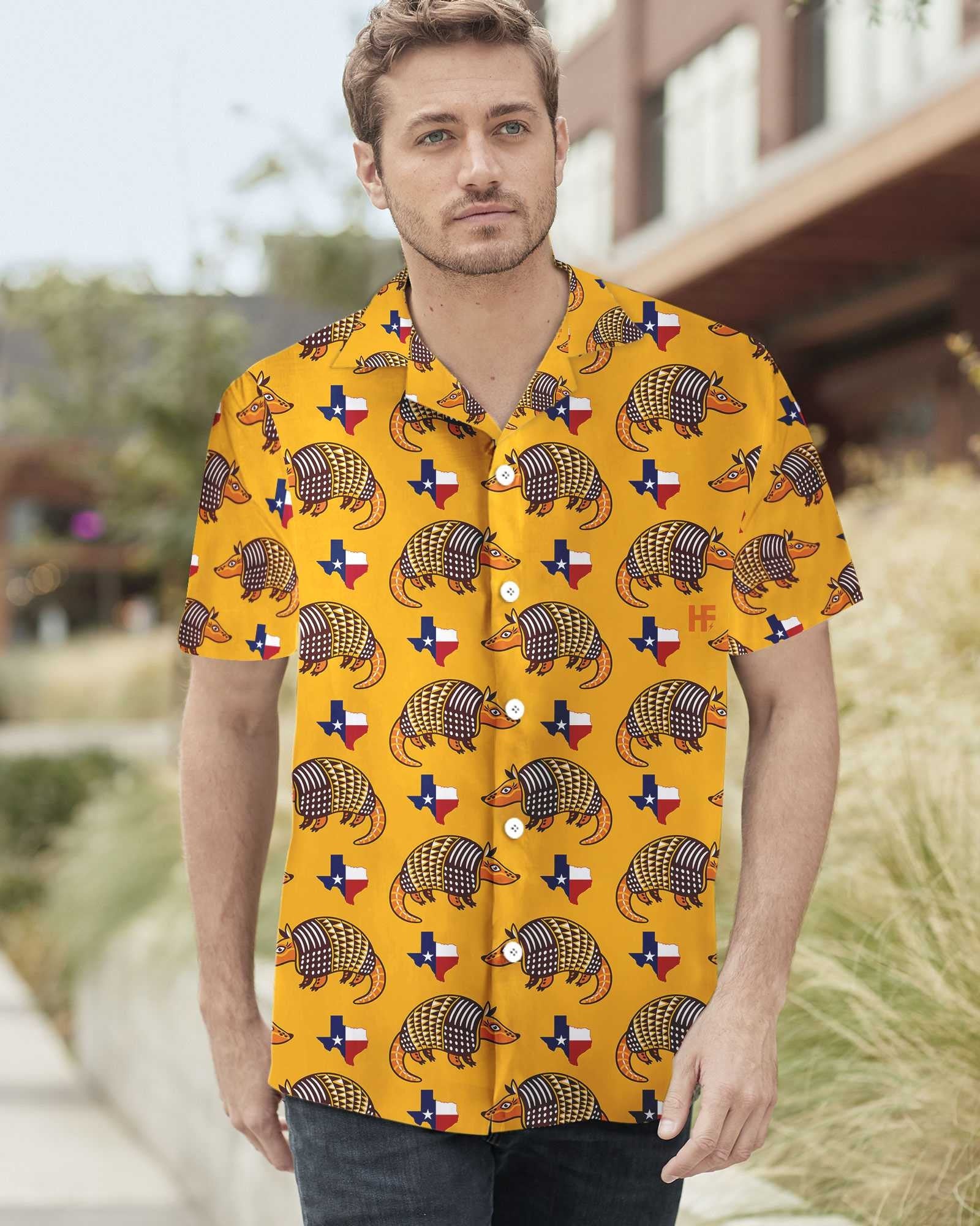 Texas Proud Armadillo On Gold Background Design Hawaiian Shirt, Hawaiian Shirt Gift, Christmas Gift
