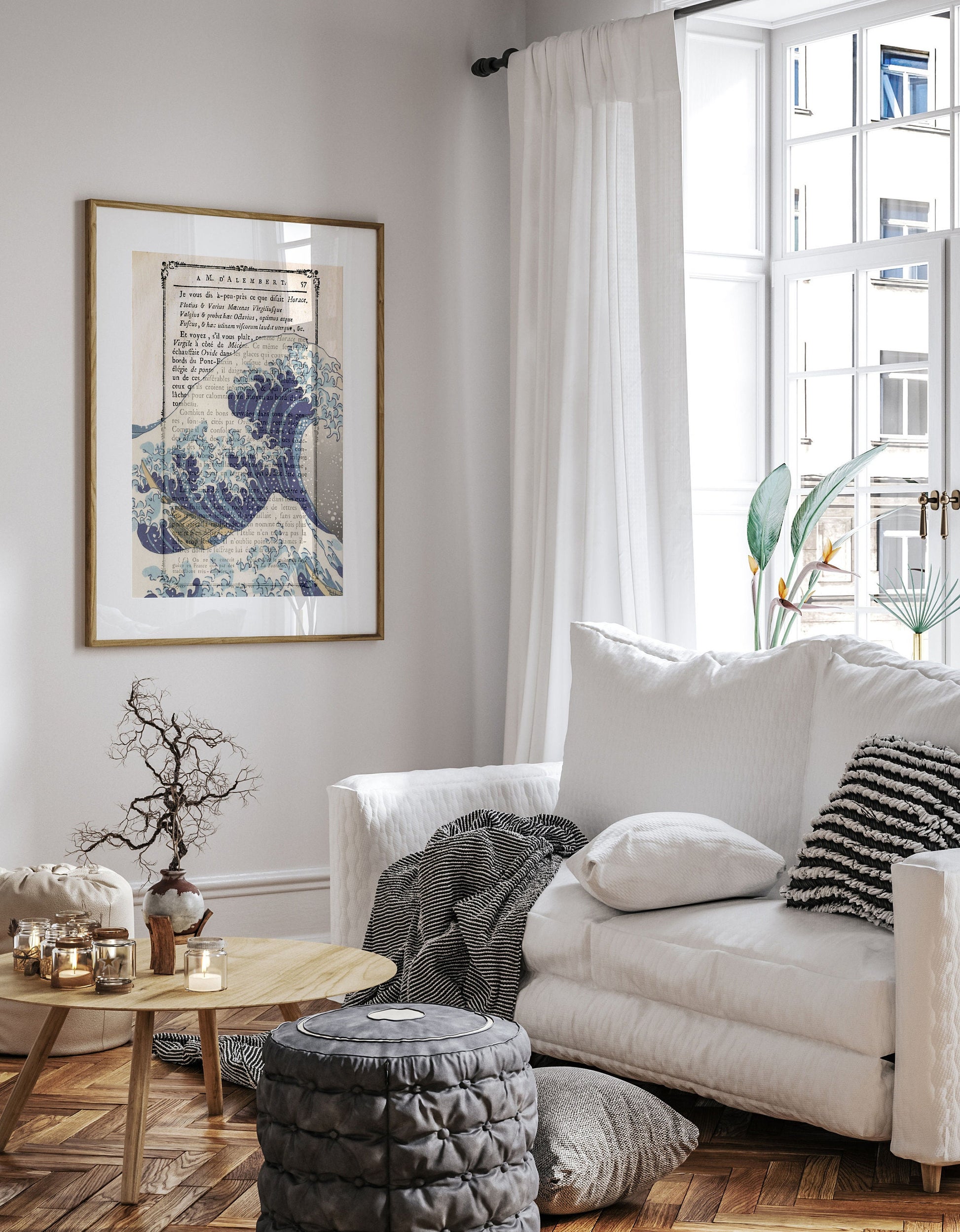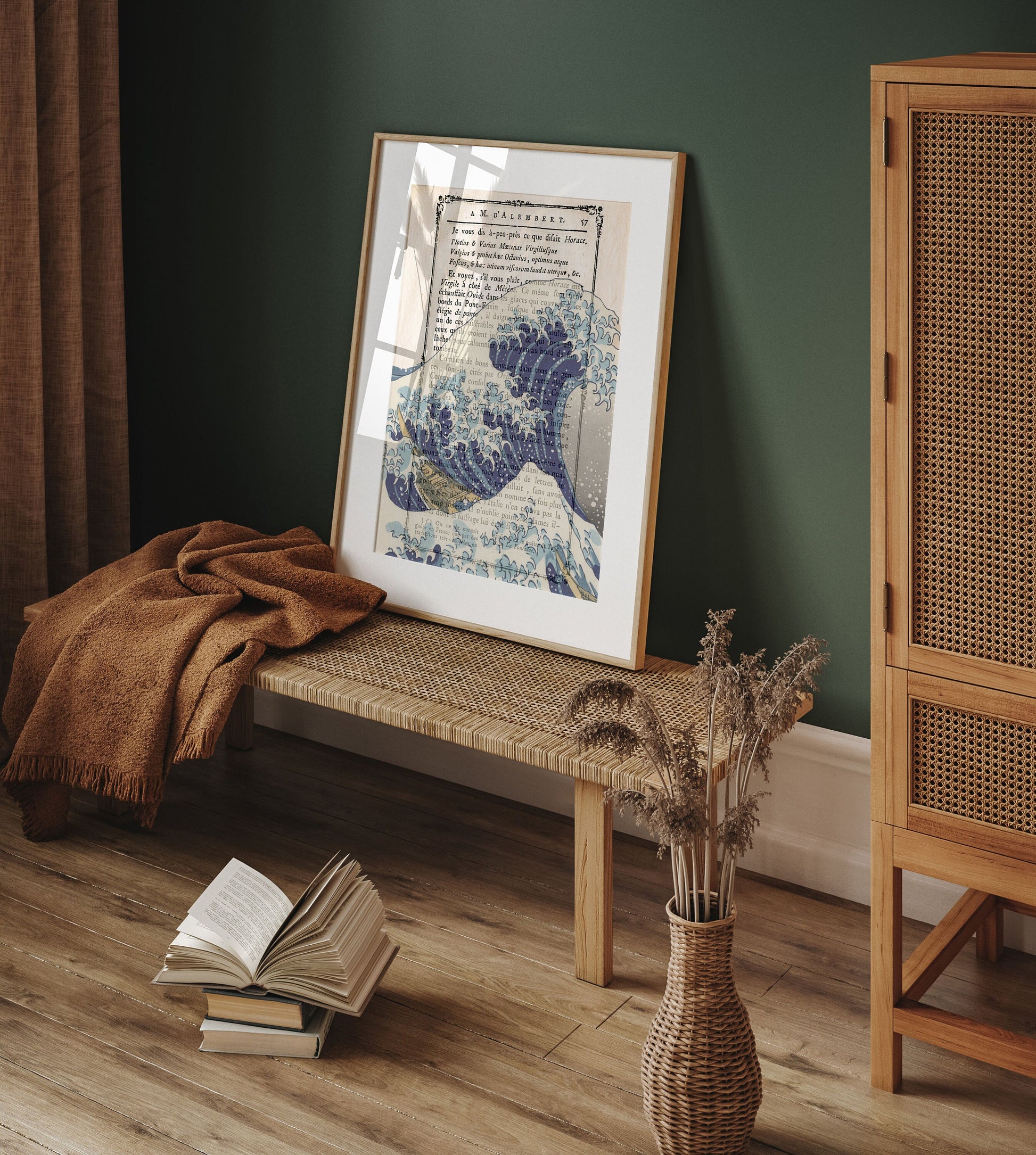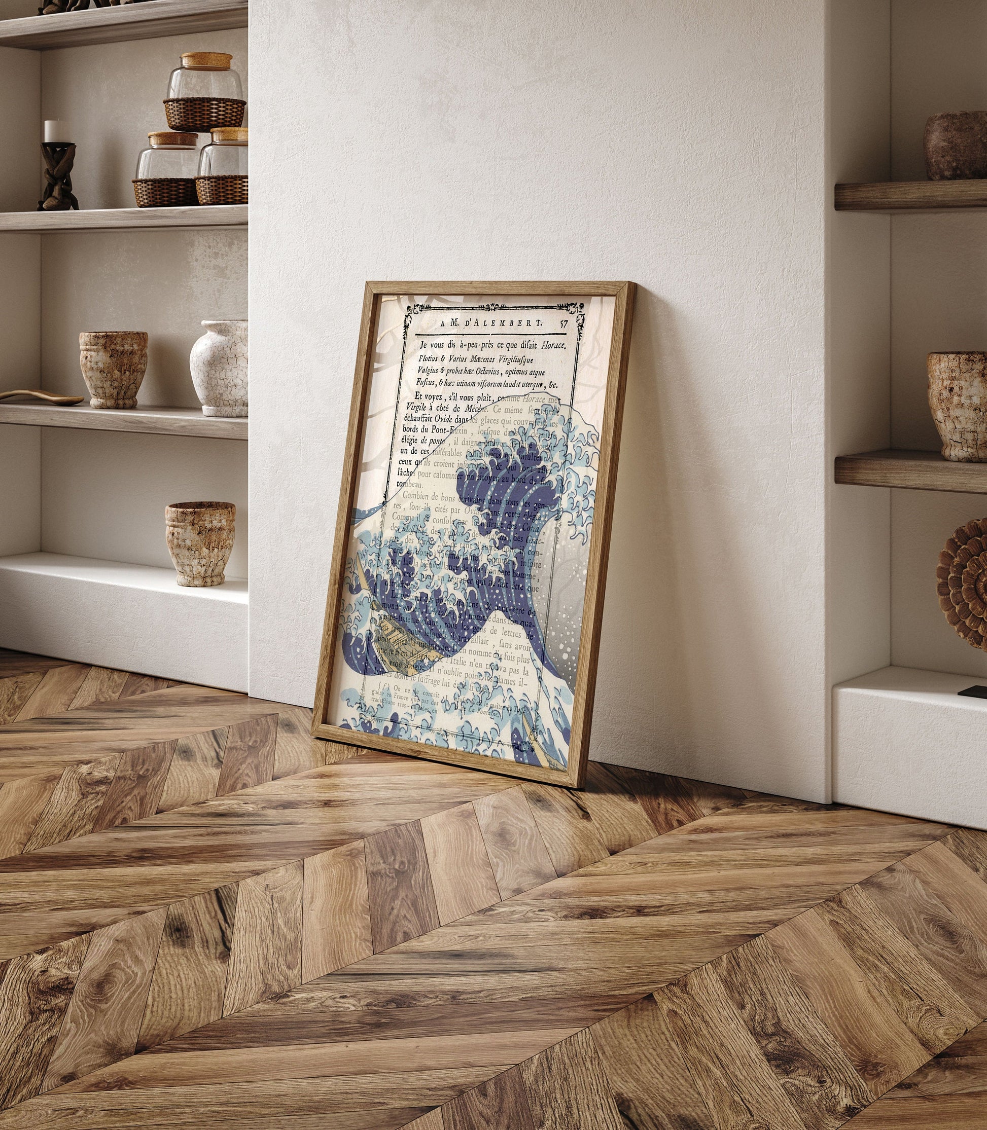 The Great Wave by Katsushika Hokusai Poster Print on vintage page of a book, Japanese Art, Vintage Poster, Katsushika Hokusai wall art