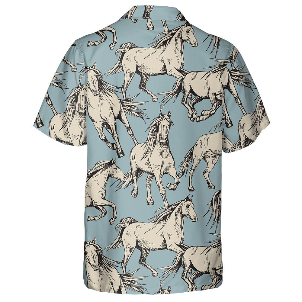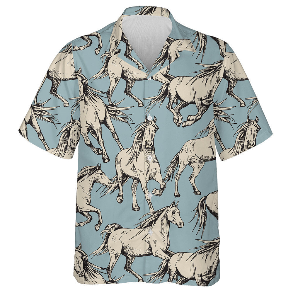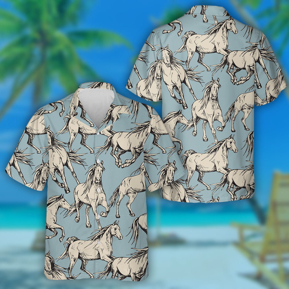 The Running Beautiful Beige Horses On A Blue Background Hawaiian Shirt, Hawaiian Shirt Gift, Christmas Gift