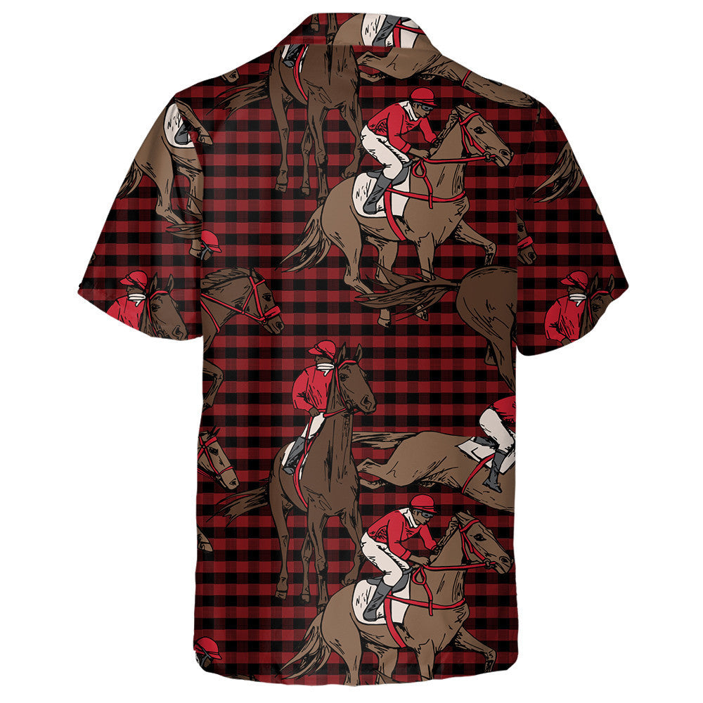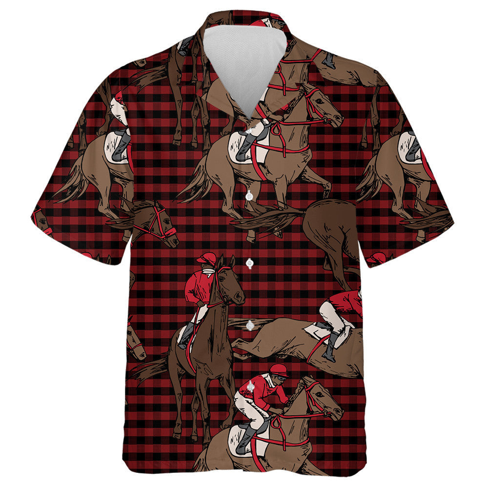 The Running Beautiful Horse And Rider On A Checkered Hawaiian Shirt, Hawaiian Shirt Gift, Christmas Gift