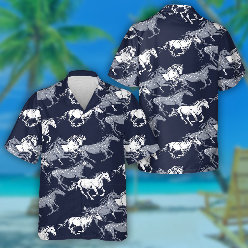 The Running Beautiful White And Gray Horses Hawaiian Shirt,Hawaiian Shirt Gift, Christmas Gift