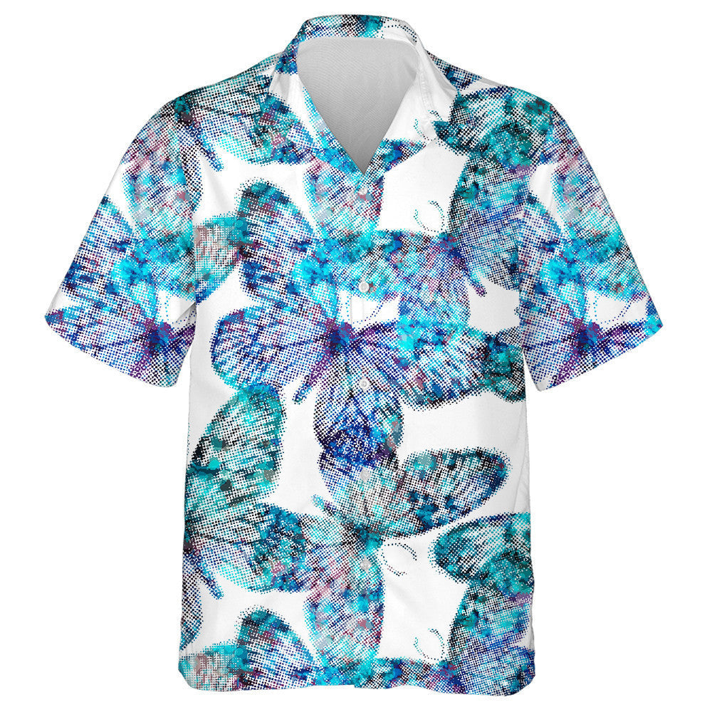 Theme Colorful Blue Butterflies Faded Away Hawaiian Shirt, Hawaiian Shirt Gift, Christmas Gift