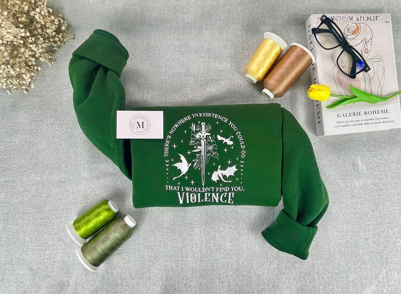 There’s Nowhere In Existence You Could Go That I Wouldn’t Find You Violence Embroidered Sweatshirt, Retro Dragons Bookish Embroidery Hoodie