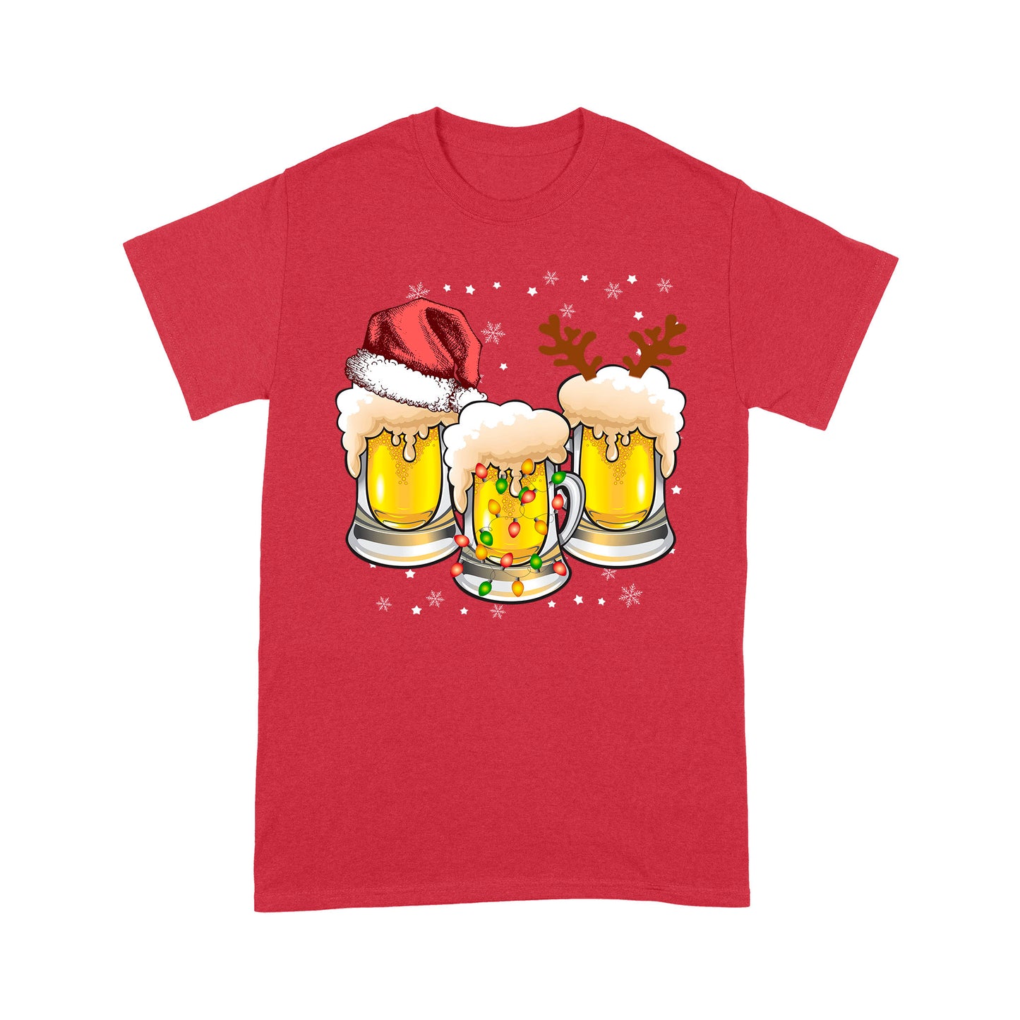 Three Glasses Of Christmas Beer Funny Christmas Tee - Standard T-shirt Tee Shirt Gift For Christmas