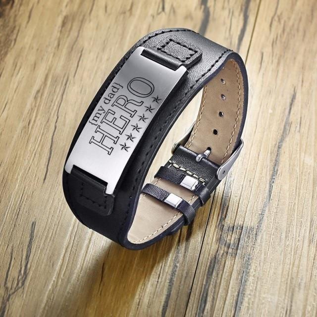 If you're looking for a perfect men's bracelet for dad or Father's day gift. This men's engraved bracelet is a perfect one! The bracelet is beautifully engraved with a meaningful message to show how much you love your dad and always be grateful to him. Also, the strap of the bracelet is made from leather material with a high-strength safety clasp. It will be an awesome bracelet to make him happy absolutely!