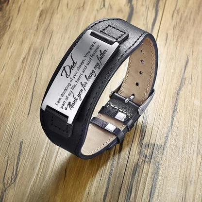 To My Dad - Thank You My Father Engraved Leather Bracelet