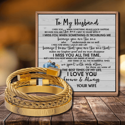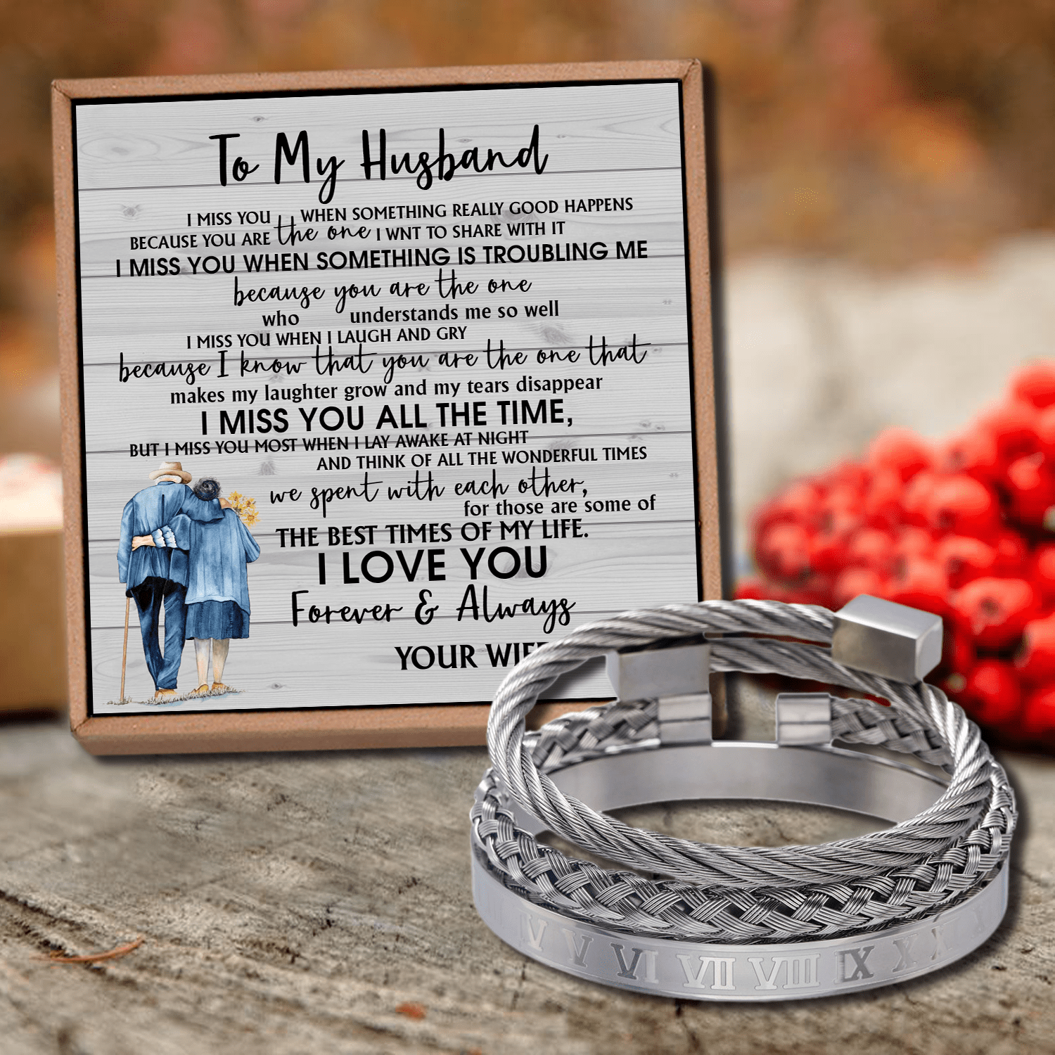 To My Husband - I Love You Forever And Always Roman Numeral Bracelet Set