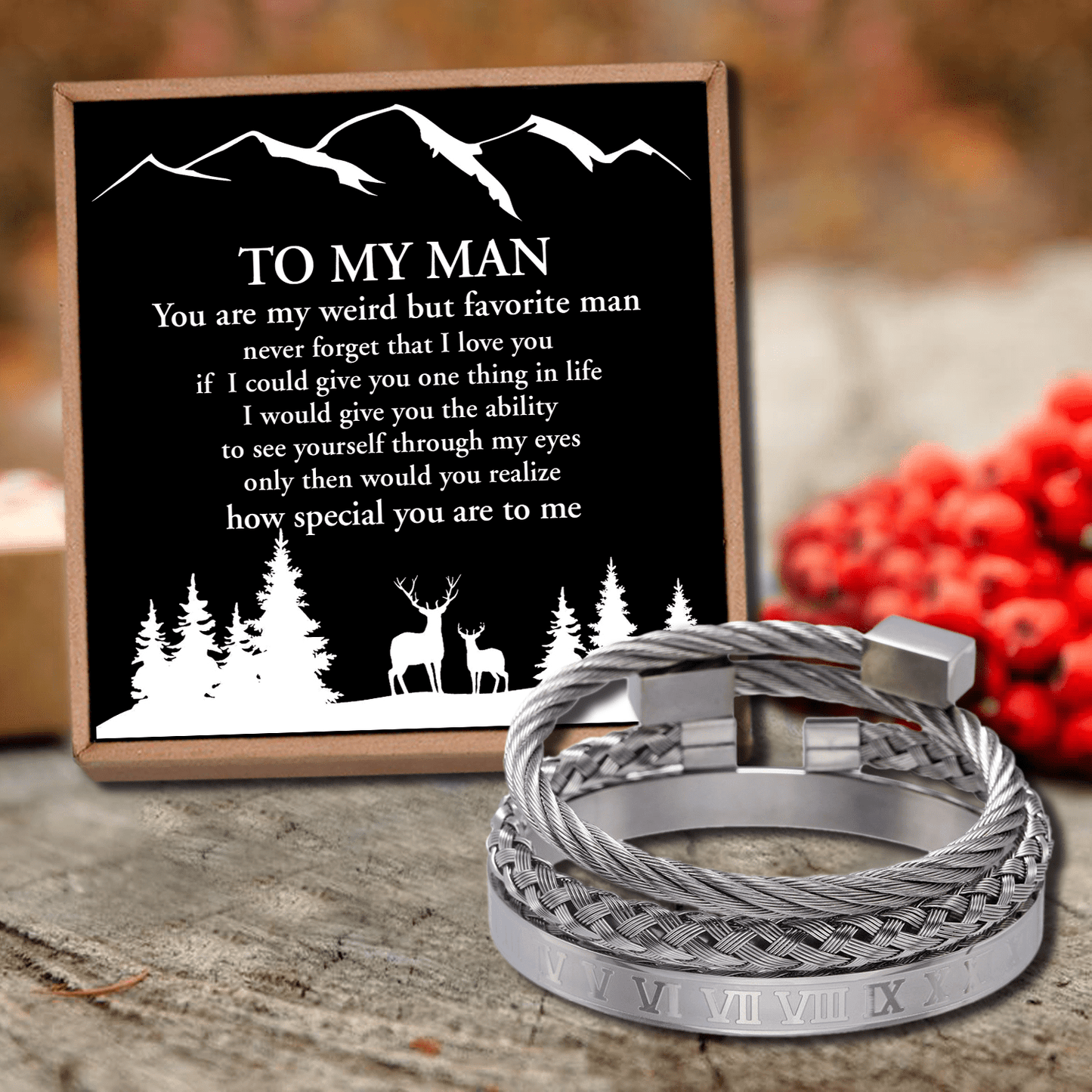 If you're looking for an awesome men's bracelet for husband or boyfriend. This "To My Man - You Are Special To Me Roman Numeral Bracelet Set" is the most perfect one! The bracelet set is beautifully designed and perfectly matched for any outfit style. Also, it comes together with a gift card that is beautifully printed a meaningful message to show how much you love and will always love him. So, it will be a special gift set to make him always miss you!