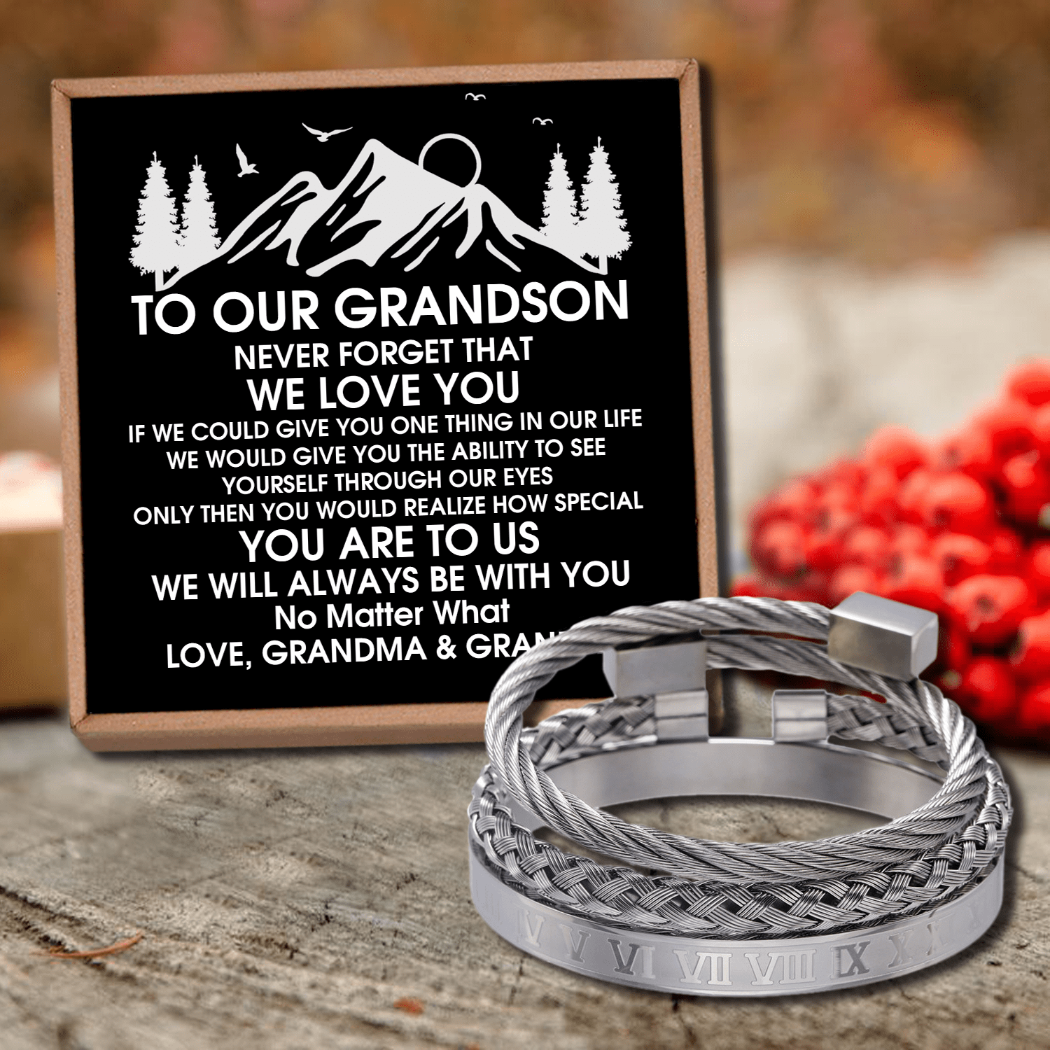 To Our Grandson - We Love You Roman Numeral Bracelet Set