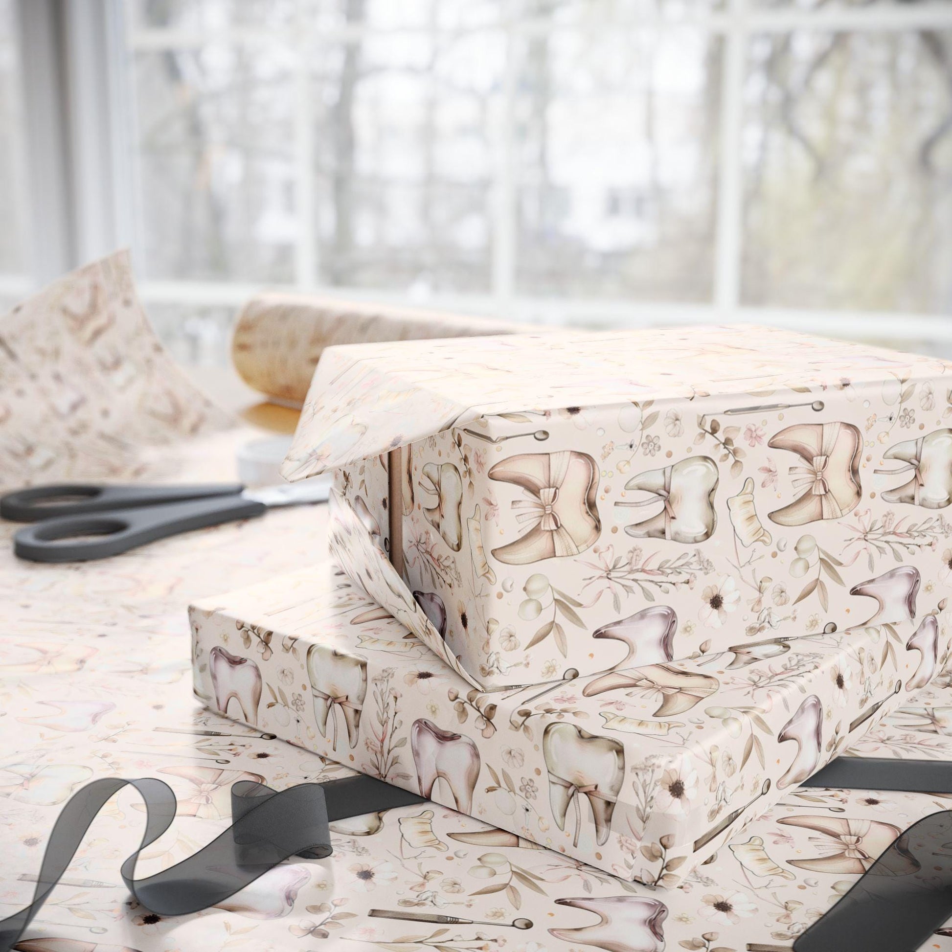 Tooth Design Wrapping Paper, Dental Office Decor, Dentist Gift Wrap Fun Gift Wrap for Dental Office Dentist and Hygienists