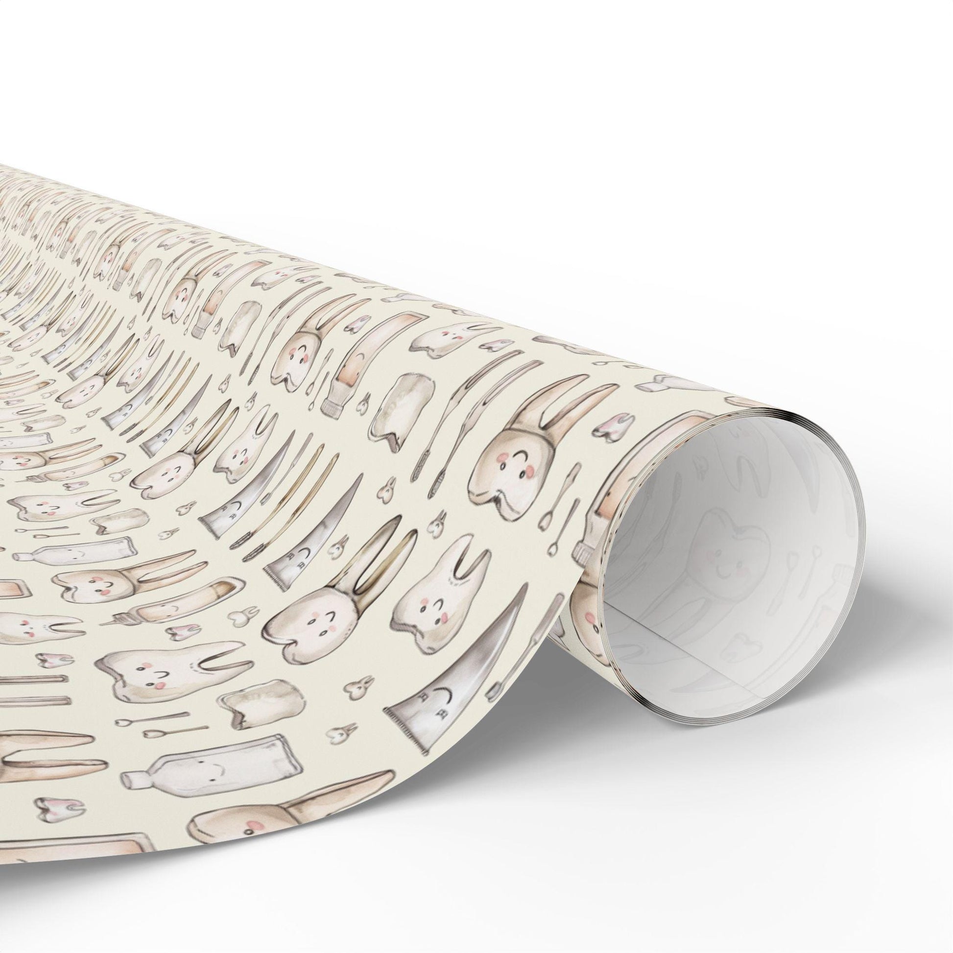 Tooth Pattern Gift Wrap, Dental Supplies Packaging, Dentist Wrapping Fun Gift Wrap for Dental Office Dentist and Hygienists