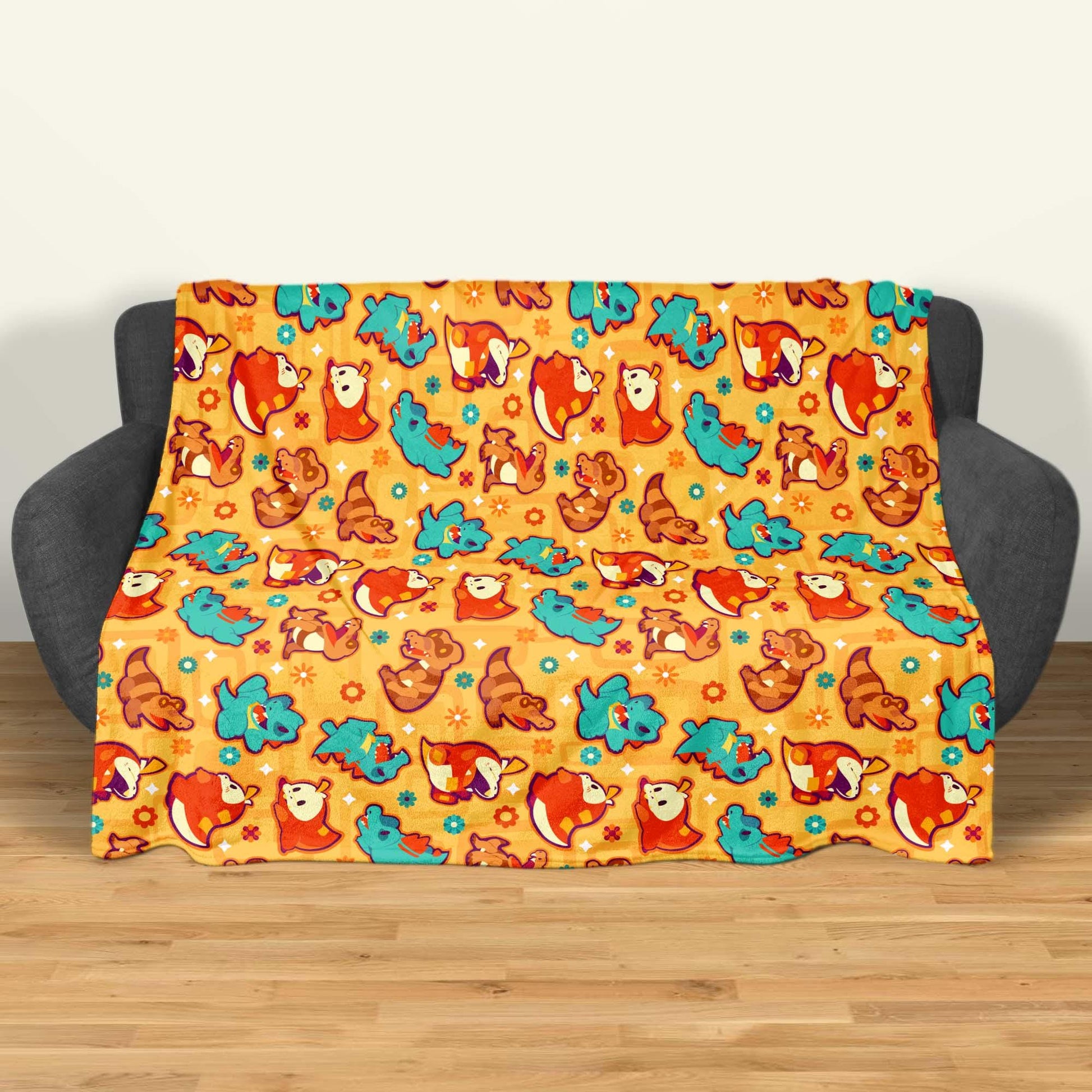 Totodile Fuecoco Fleece Blanket, Topical Throw Blanket, Cotton Baby Blanket, Home Decor Cozy Blanket, Totodile Blanket Gifts
