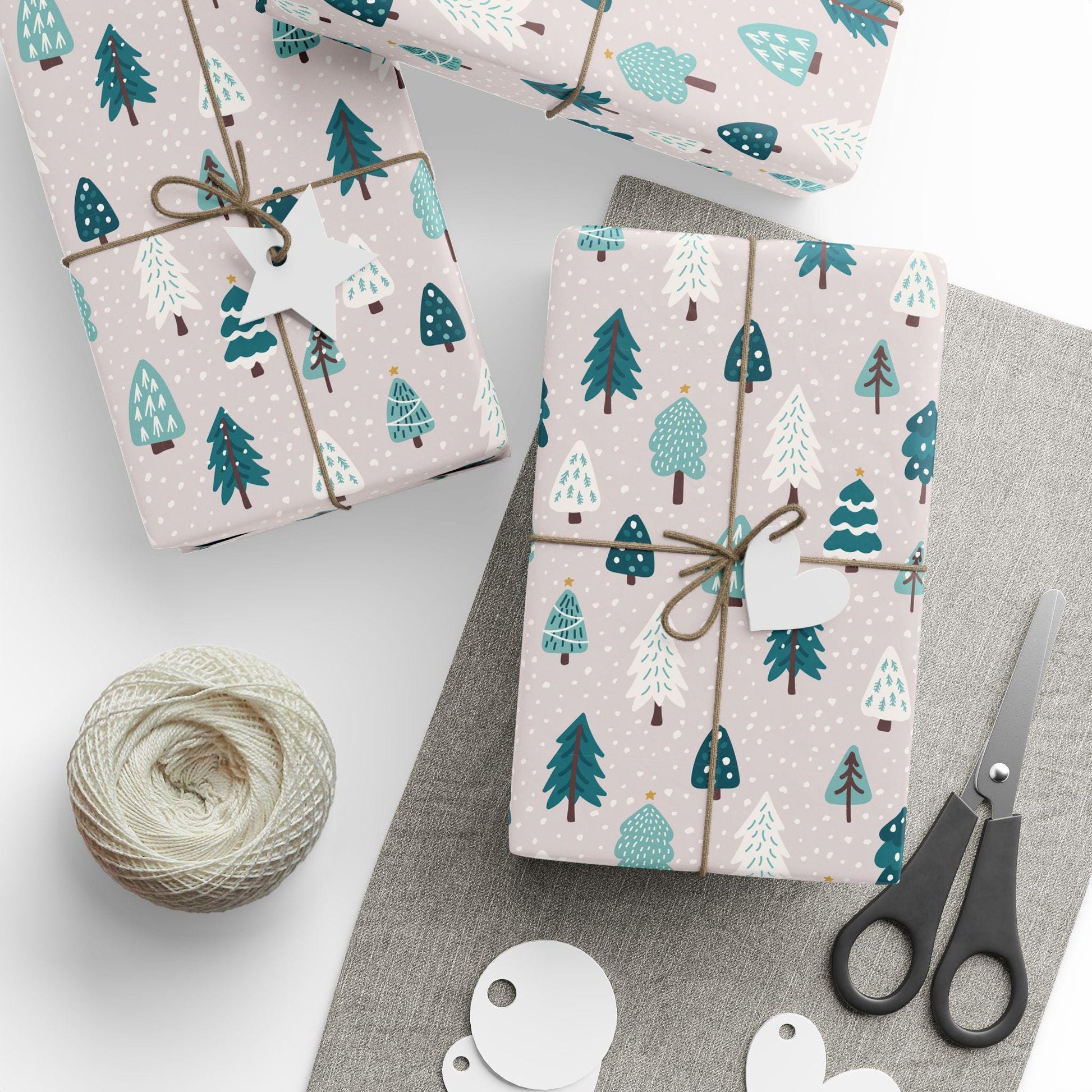 Tree Christmas Gift Wrapping Papers - Retro Christmas Gift wrap - Hand Drawn Classic Gift Wrap