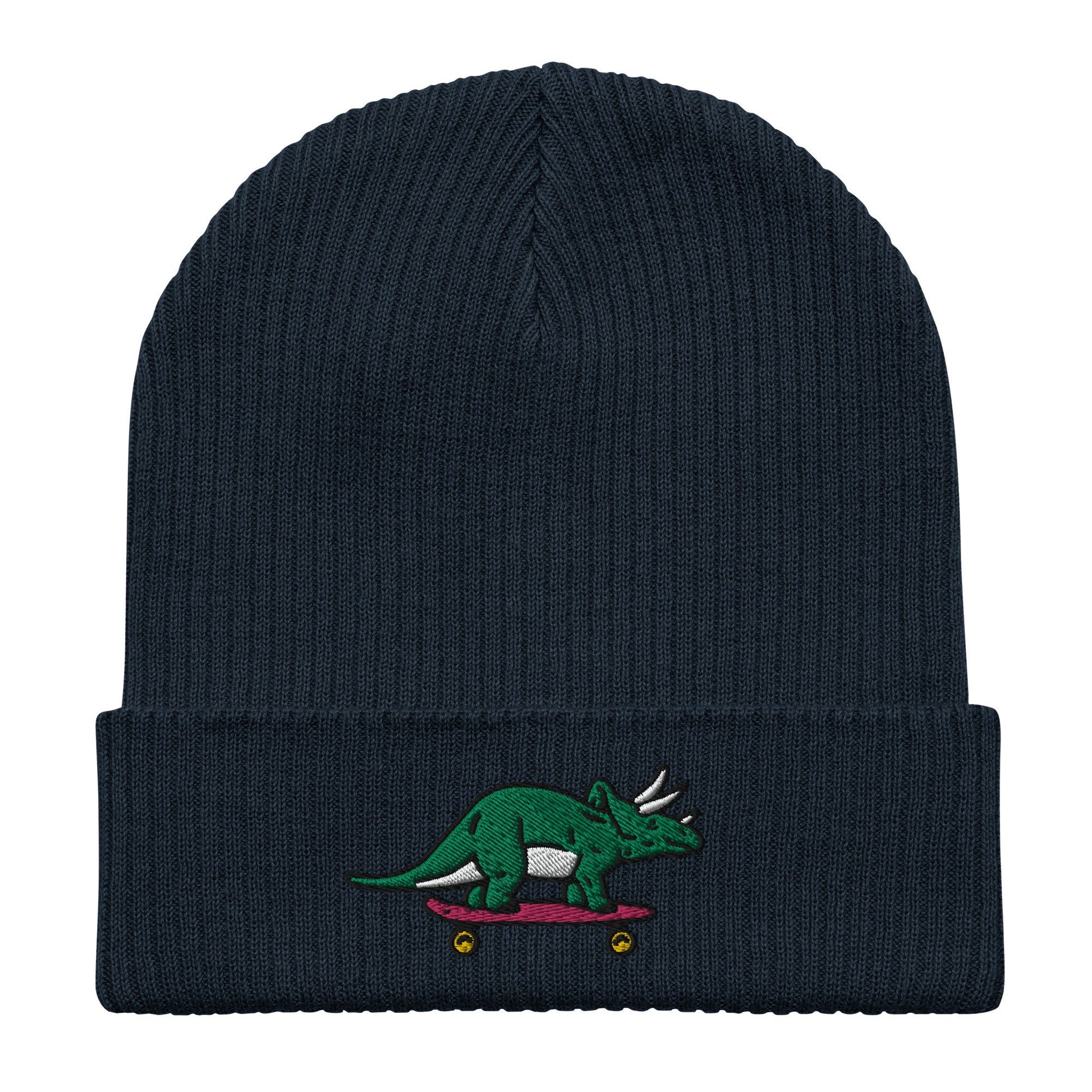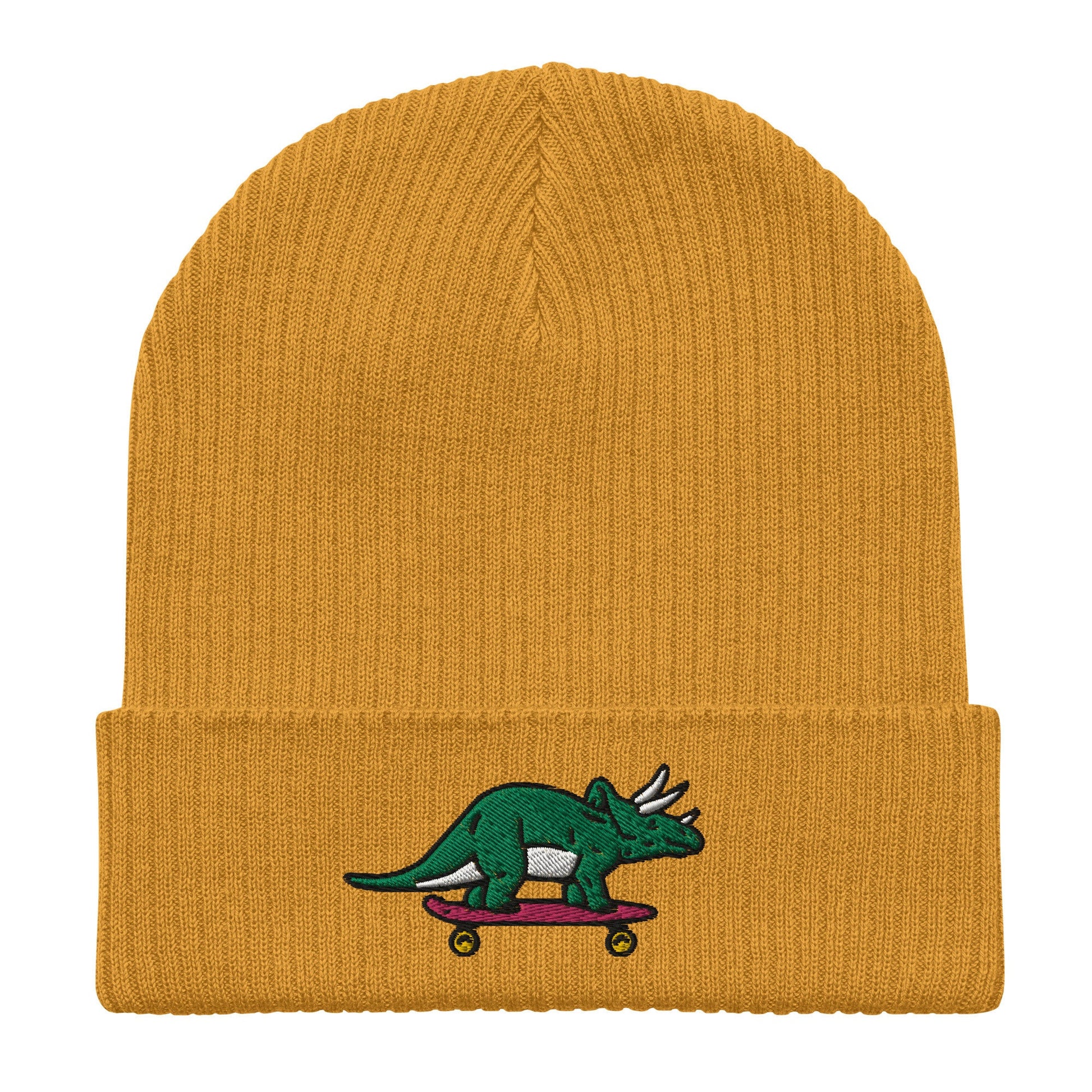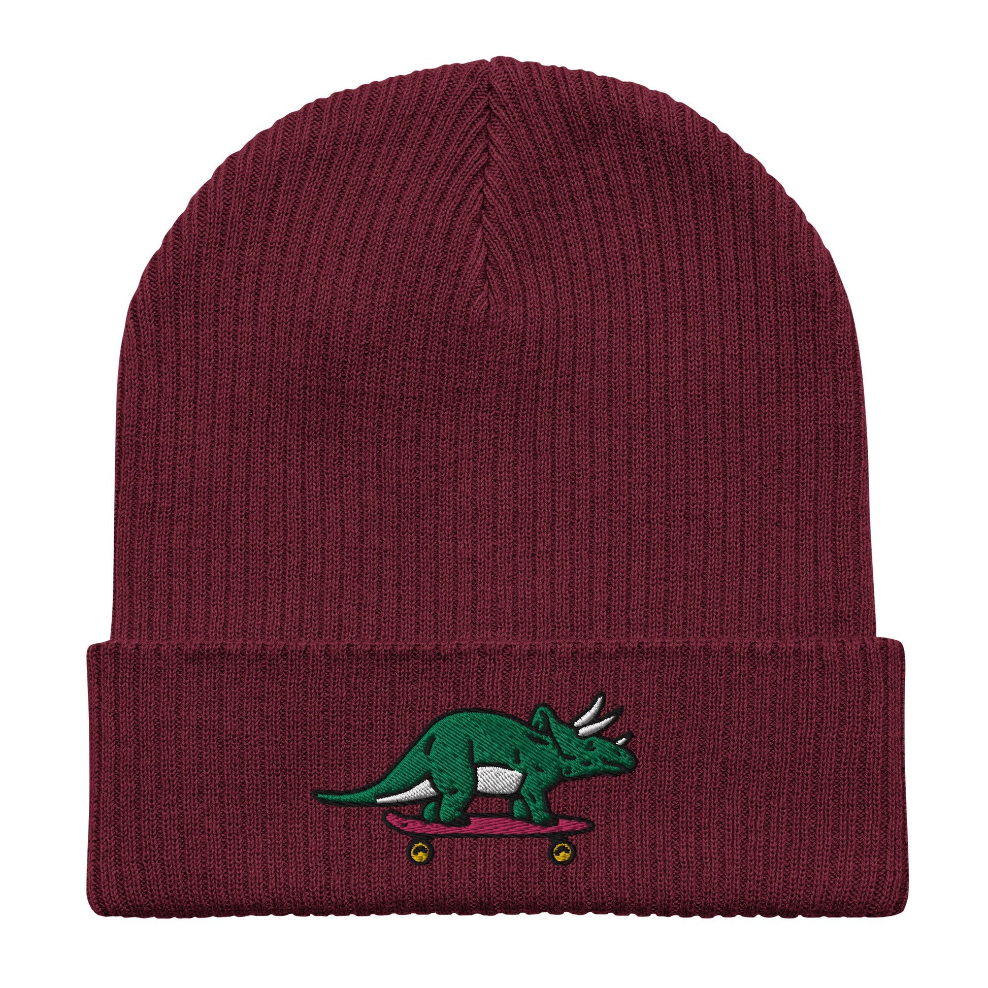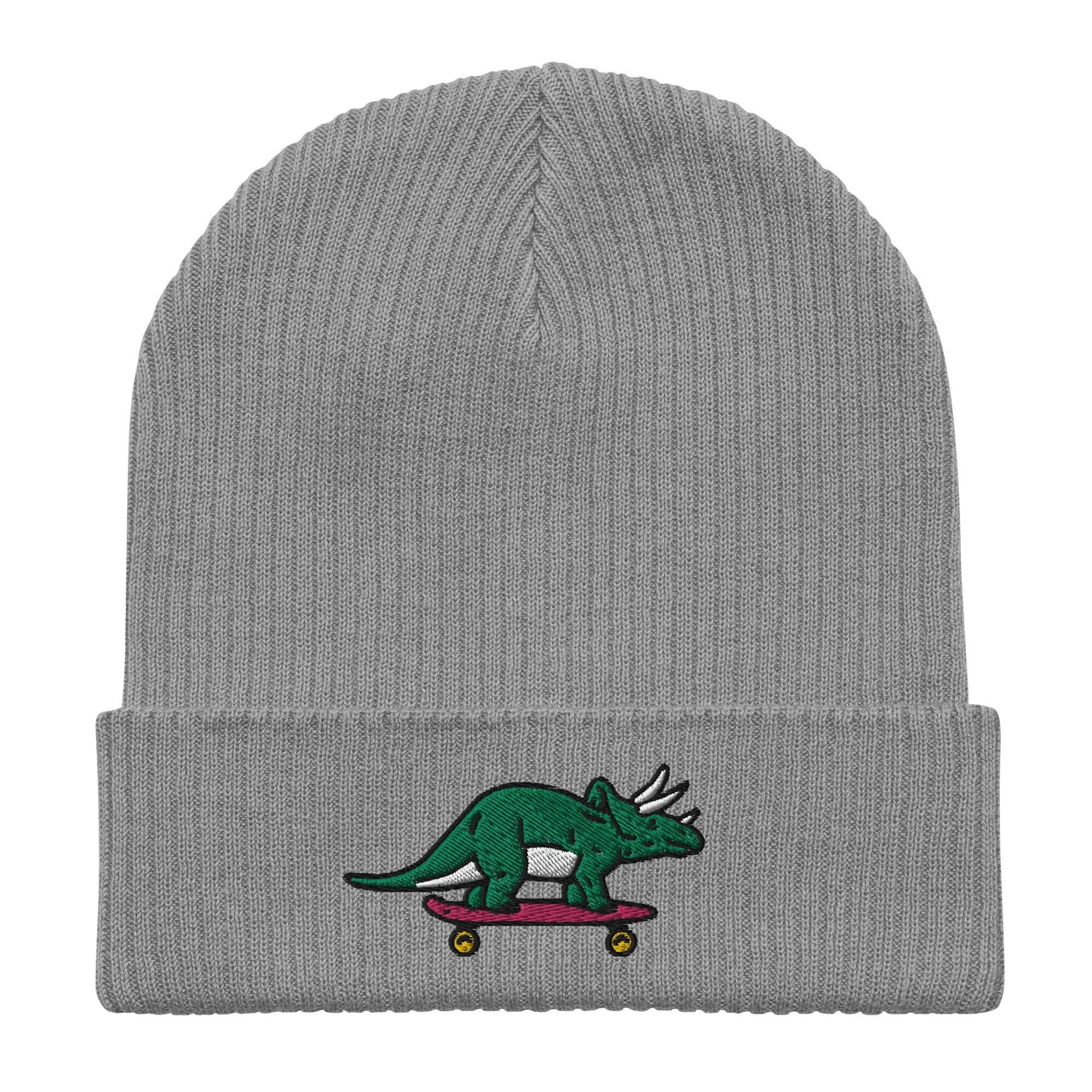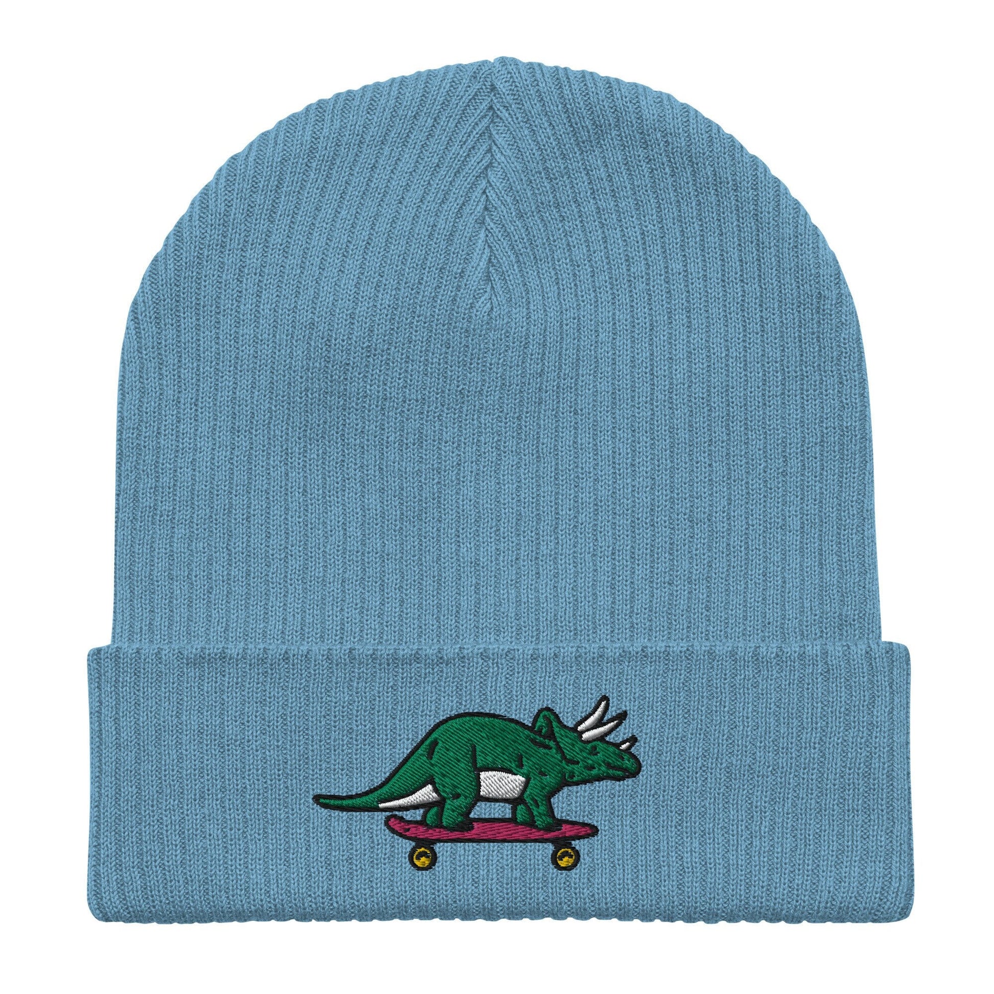 Triceratops Skateboard, Dinosaur Embroidered Beanie, Funny Beanie, Unique Streetwear, Y2K Beanie, Skater Hat, Dinosaur Lover, 90’s Fashion