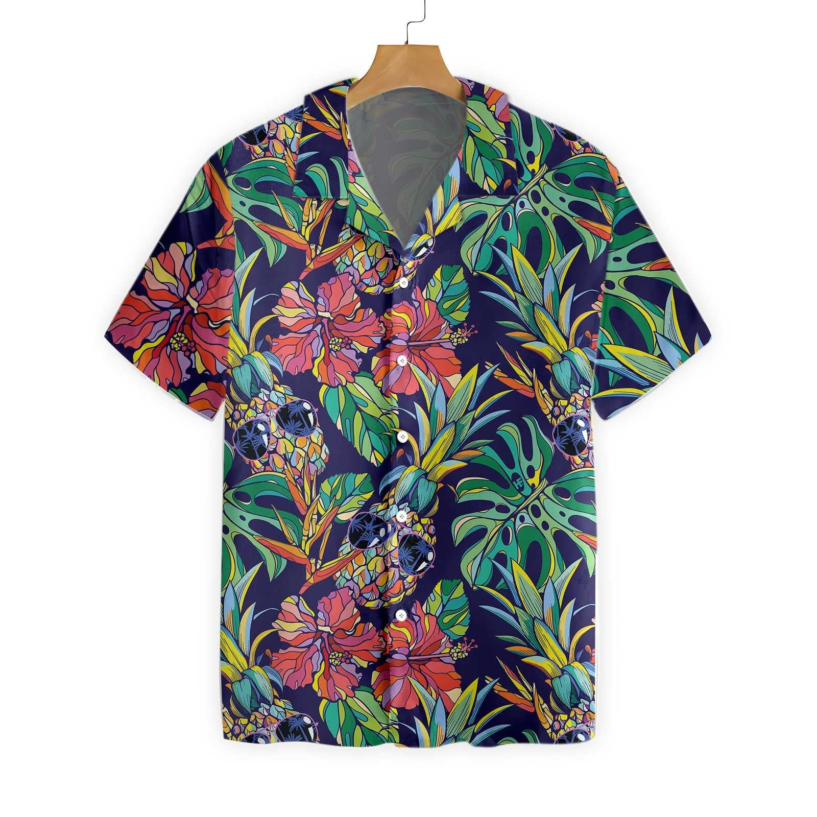 Tropical Coolest Pineapple Hawaiian Shirt Dark Blue Background,Hawaiian Shirt Gift, Christmas Gift