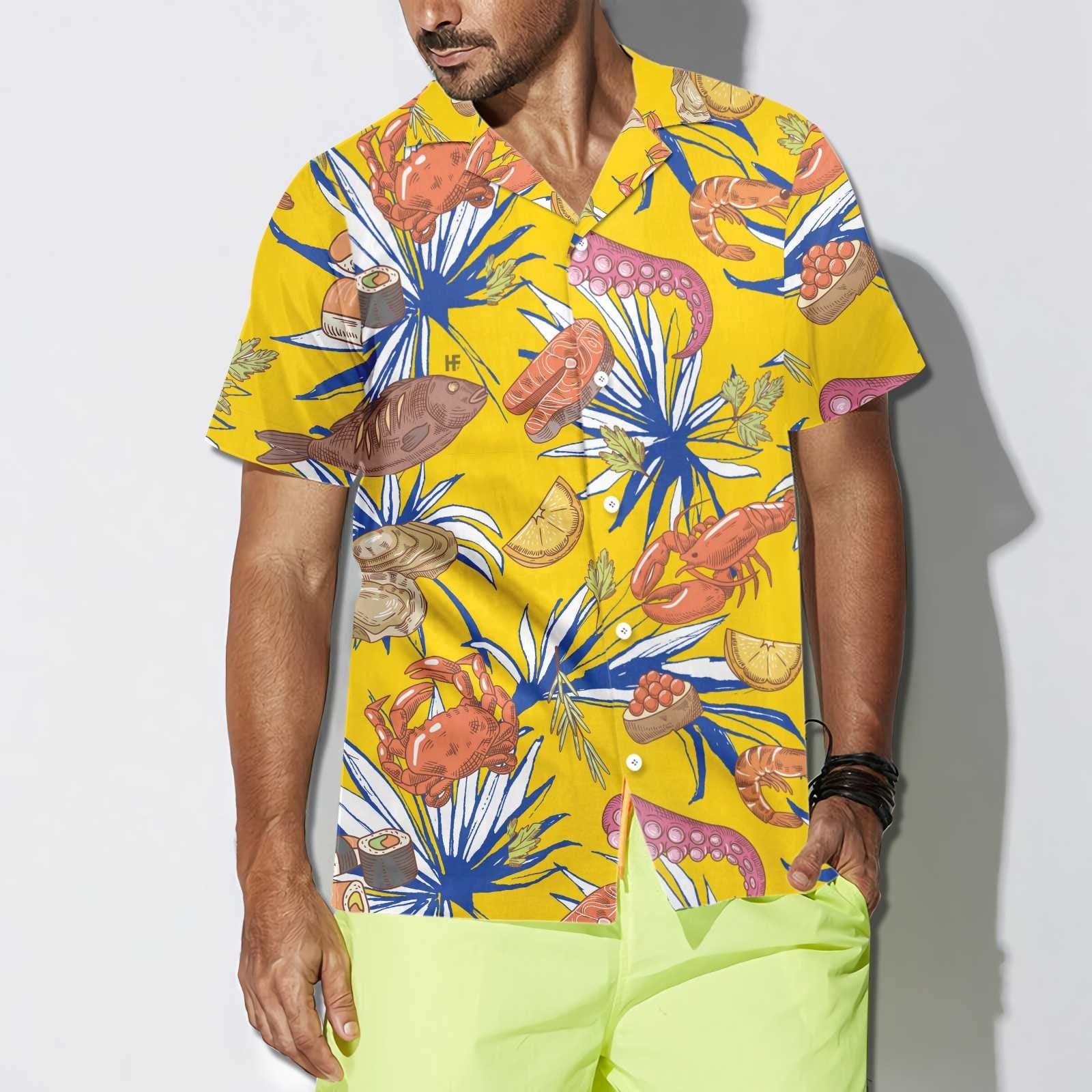 Tropical Floral Seafood On Yellow Design Hawaiian Shirt,Hawaiian Shirt Gift, Christmas Gift