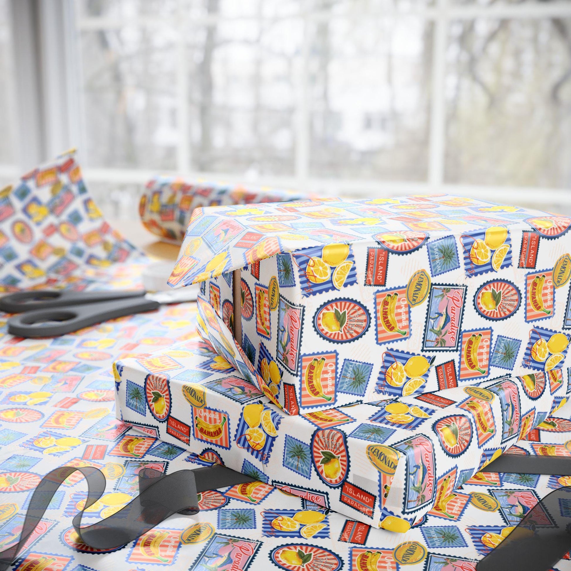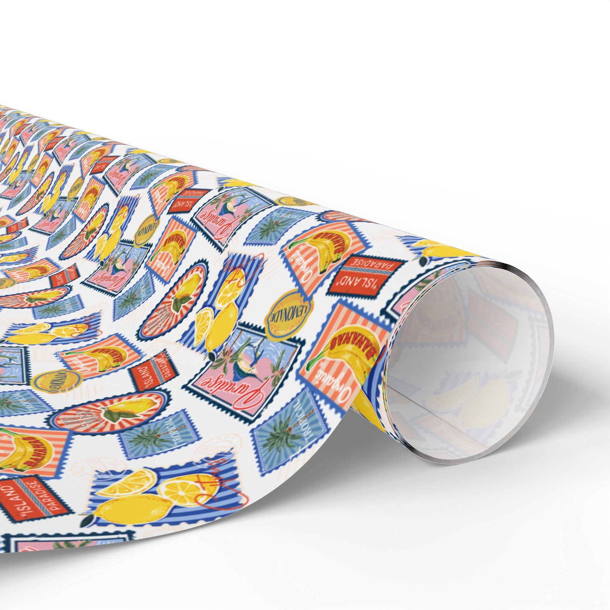 Tropical fruits Wrapping Paper Coconut girl Lemons Beach Gift Wrap Exotic fruits Hawaii Birthday bachelorette ocean coastal wedding wrapping
