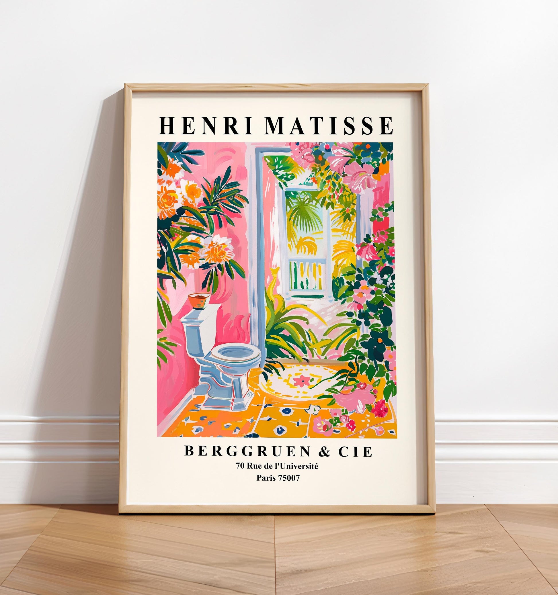 Tropical toilet wall art, Funny bathroom poster, Matisse art, Pink maximalist dopamine decor