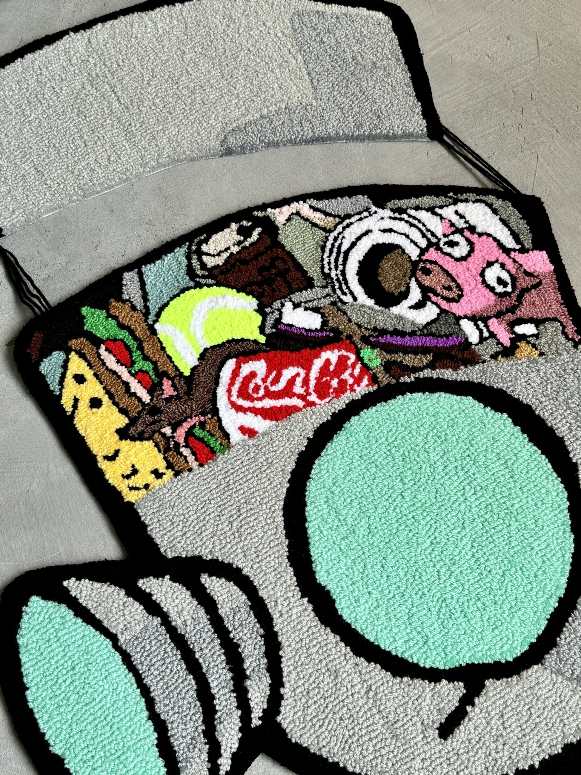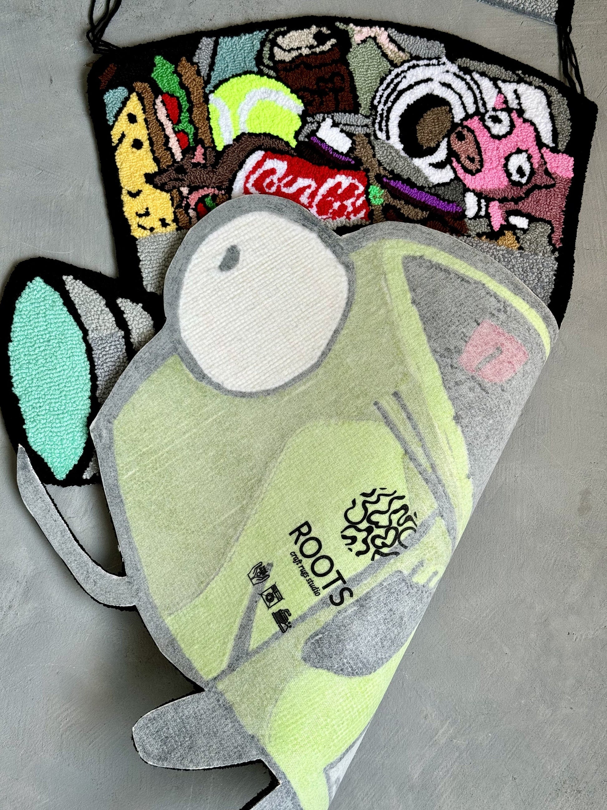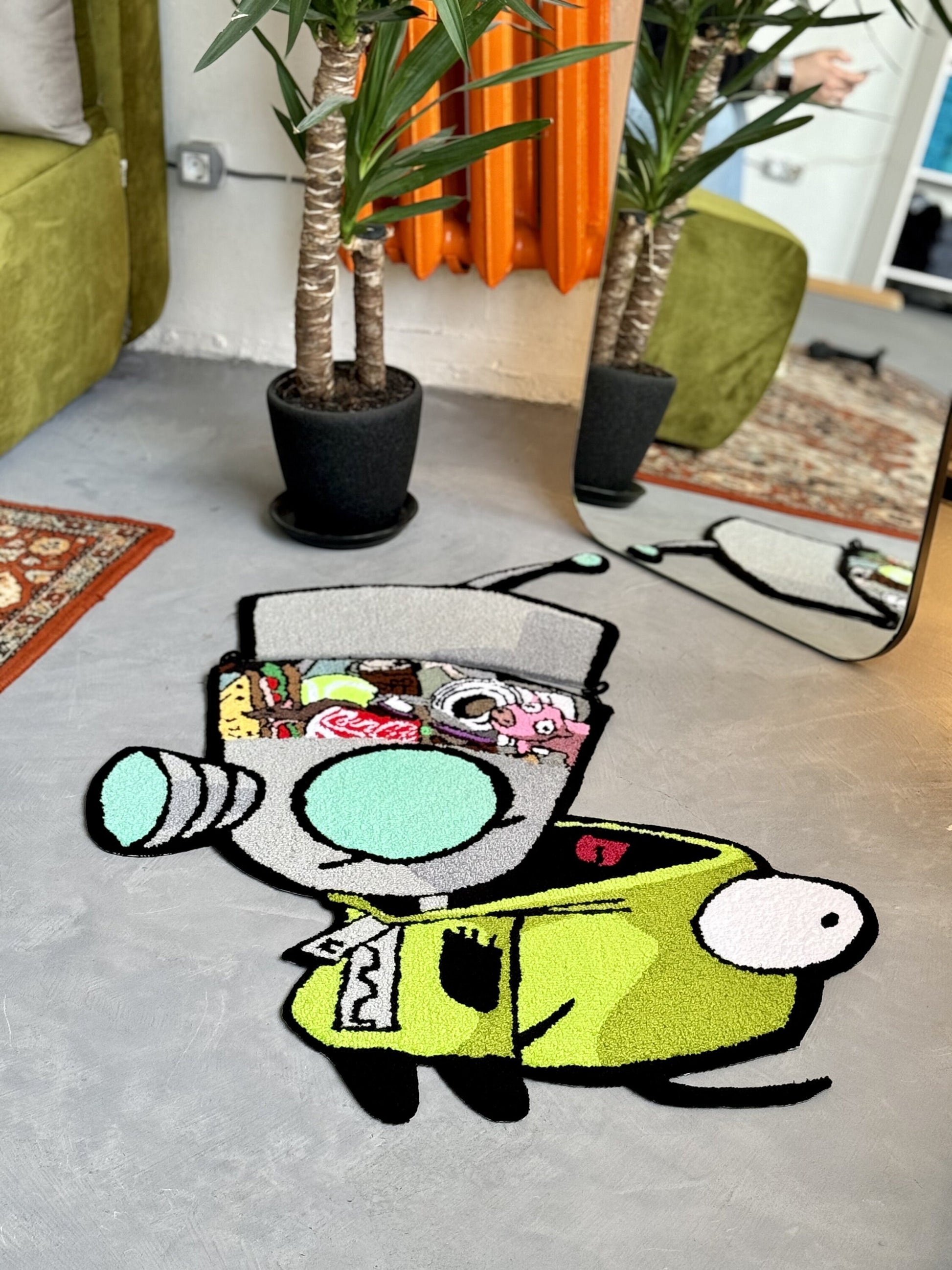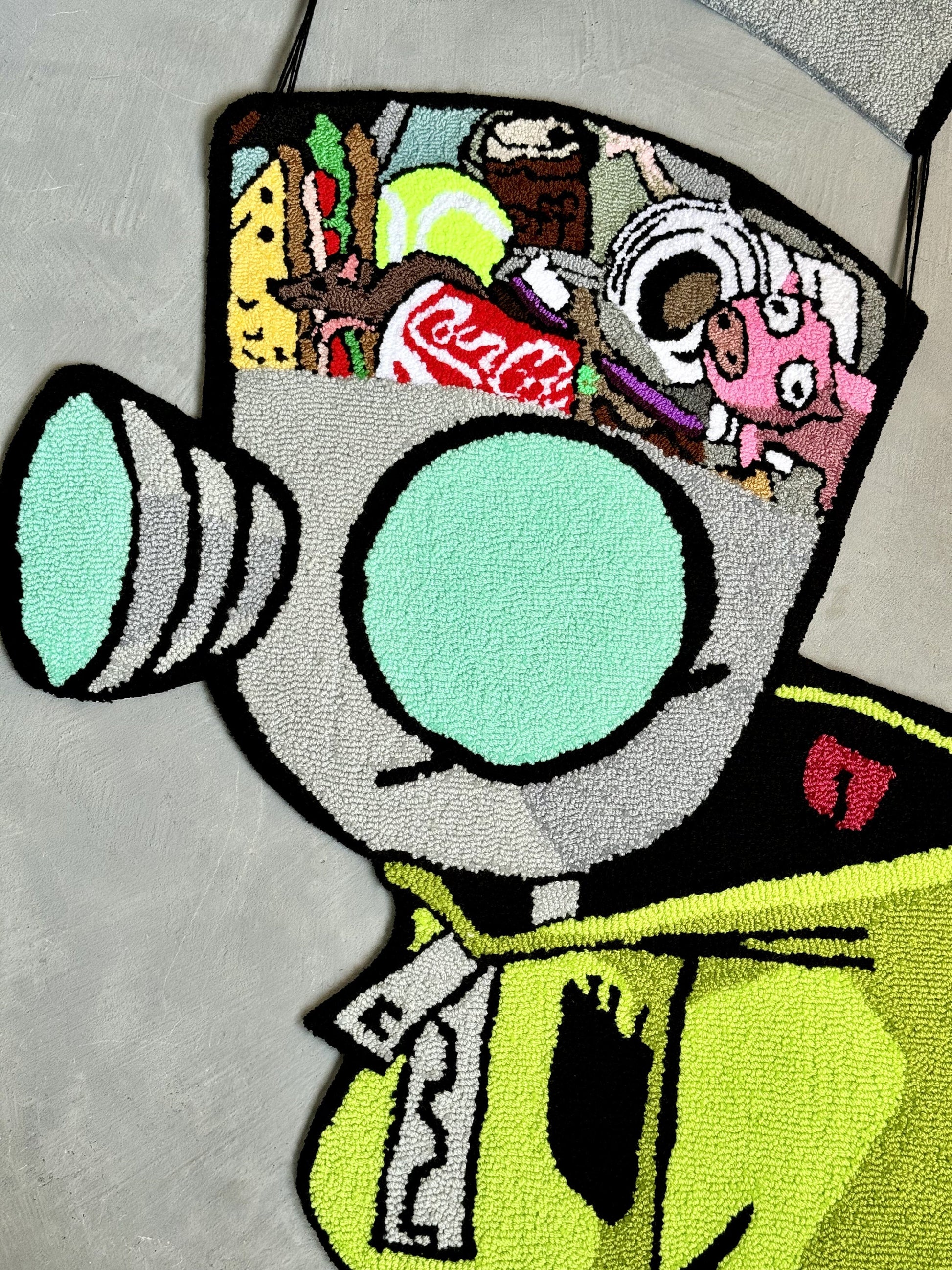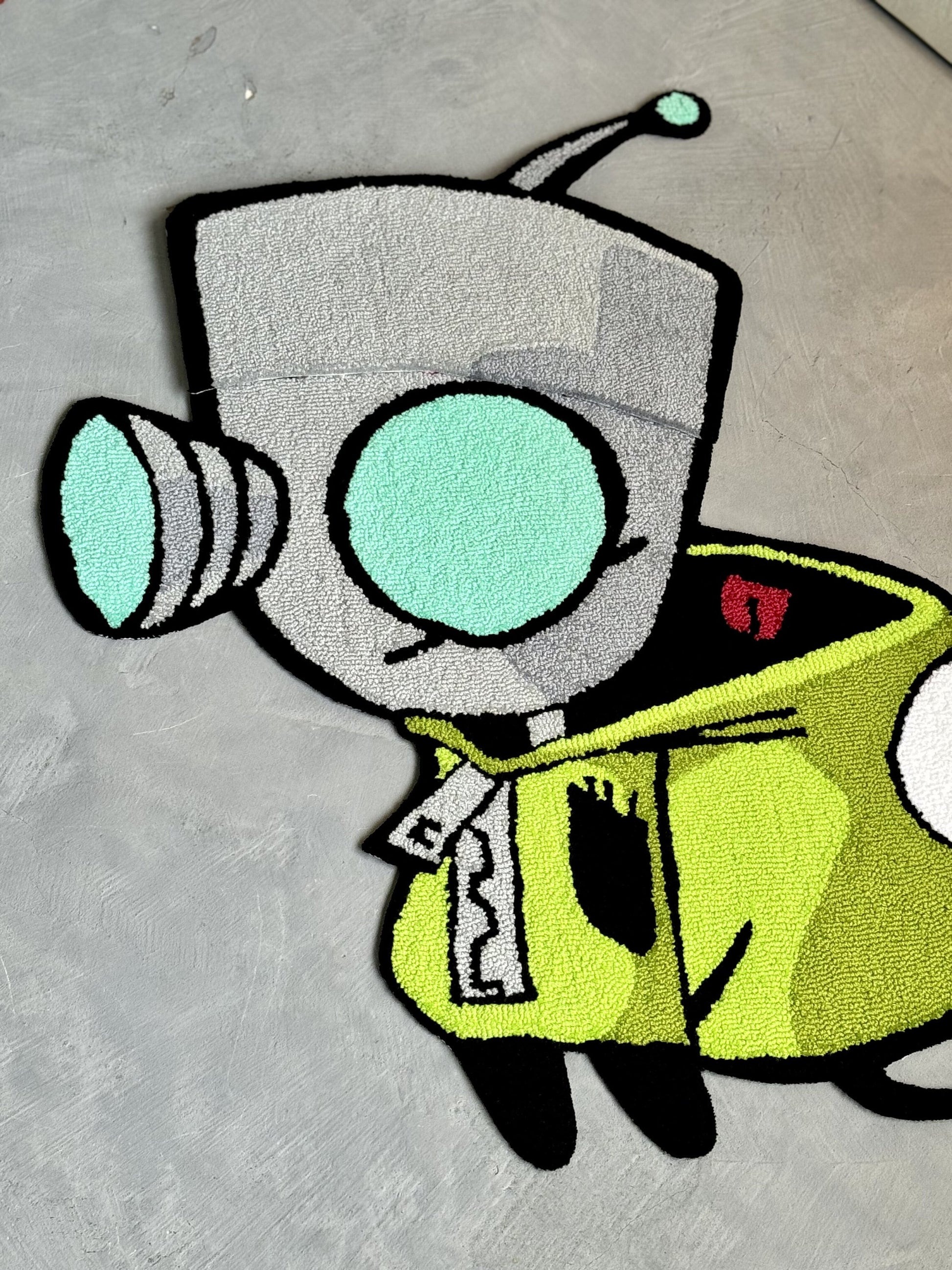 Tufted Cartoon Rug, Invader Character Rug, Alien Home Decor, Tufted Green Rug, Custom Alien Home Decor Rug