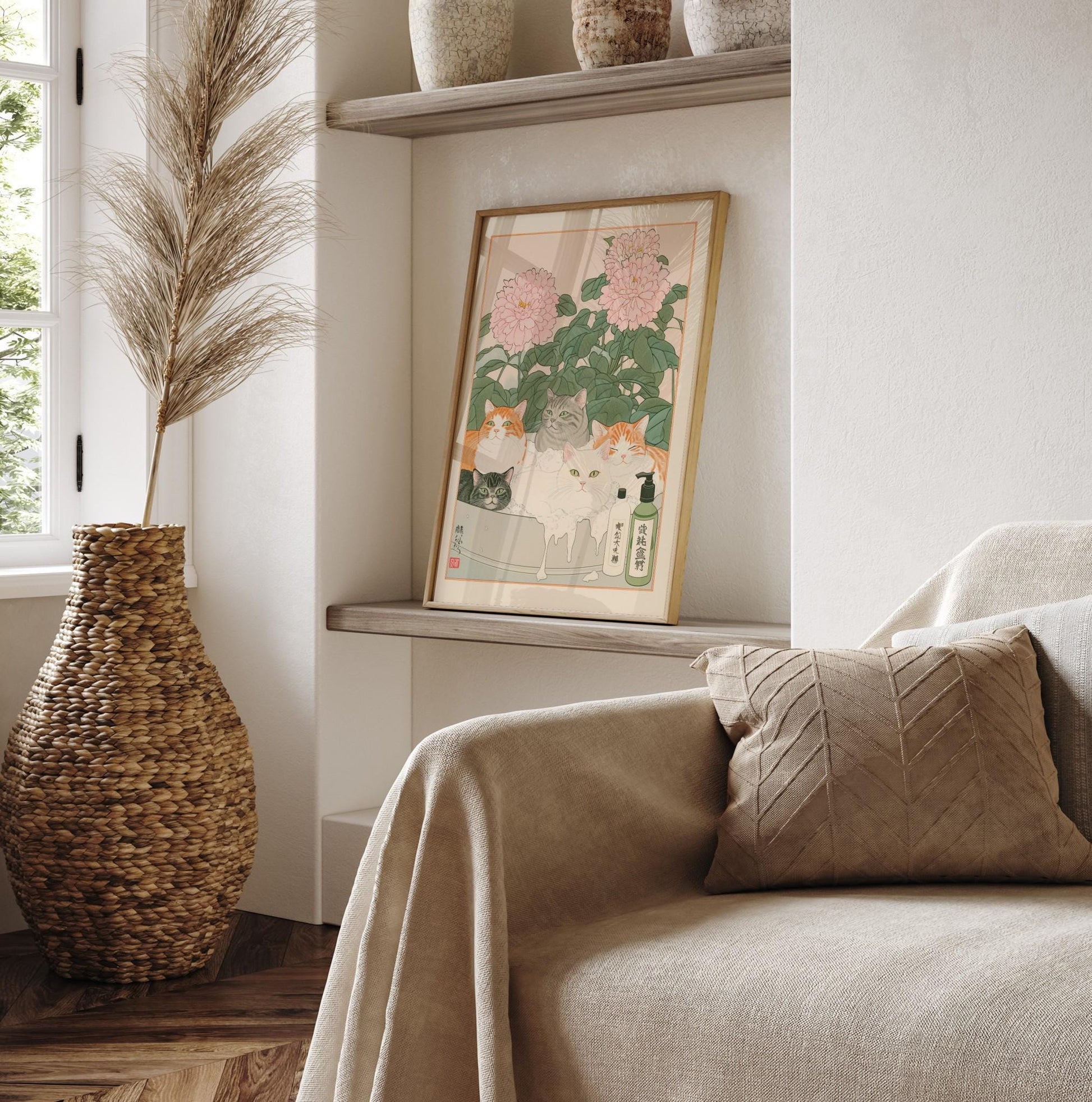 Ukiyo-e Cats Print: Japanese Bathroom Art, Minimalist Decor