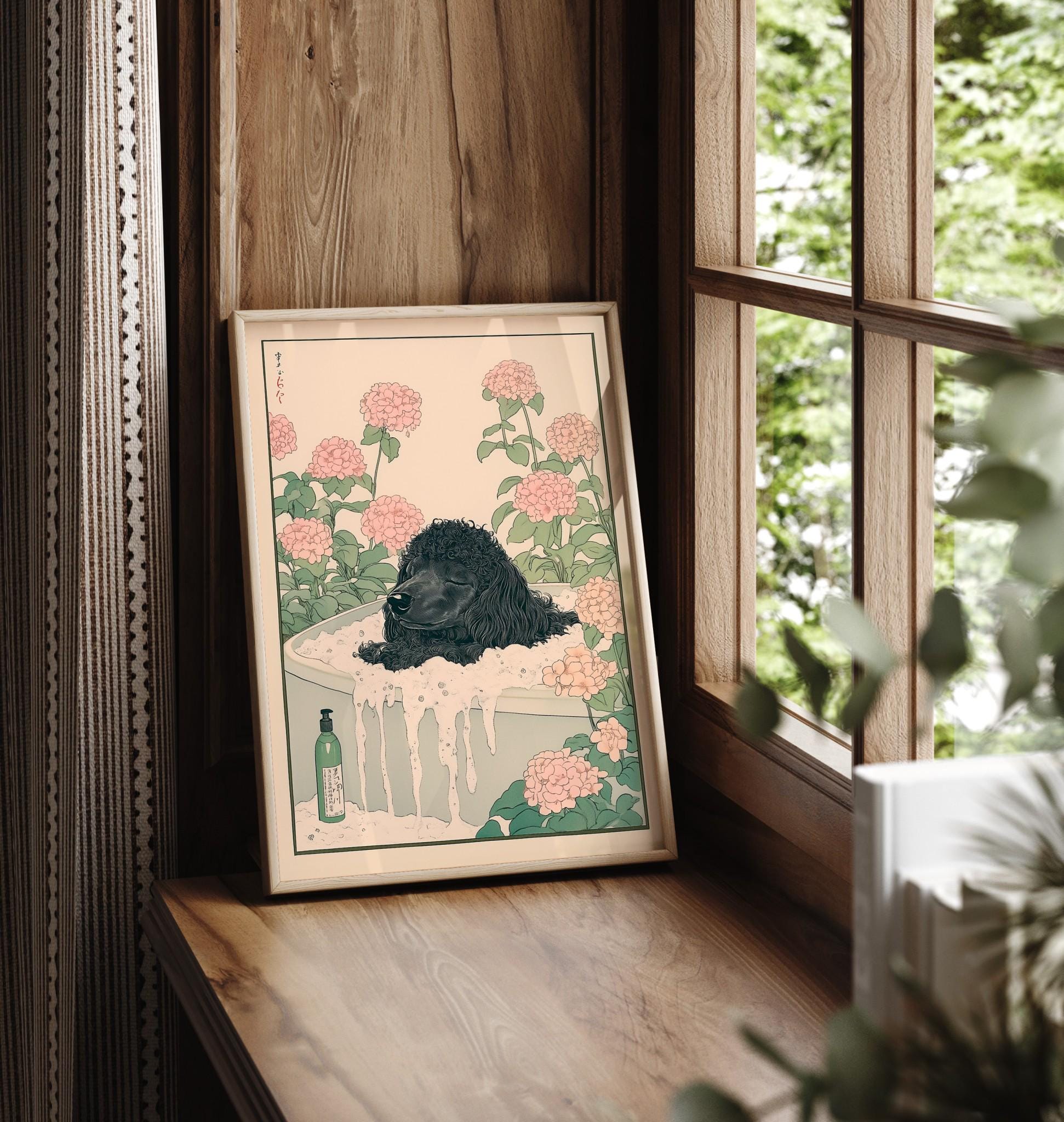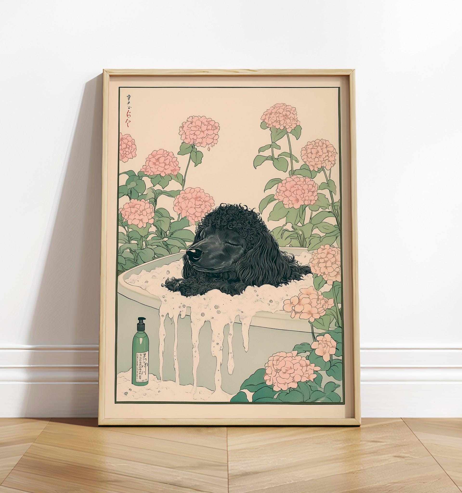 Ukiyo-e Poodle Art Print: Japandi Bathroom Poster
