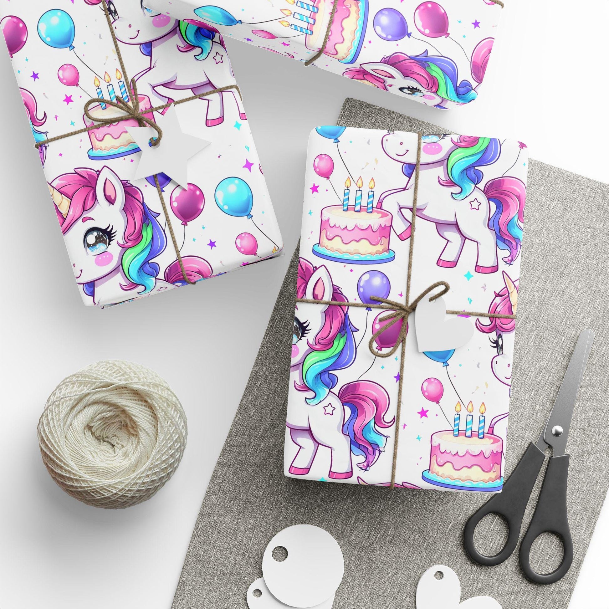 Unicorn Birthday Wrapping Paper | Rainbow Pony Gift Wrap | Kids Party Gift Paper | Cute Girl Wrapping | Magical Unicorn Decor