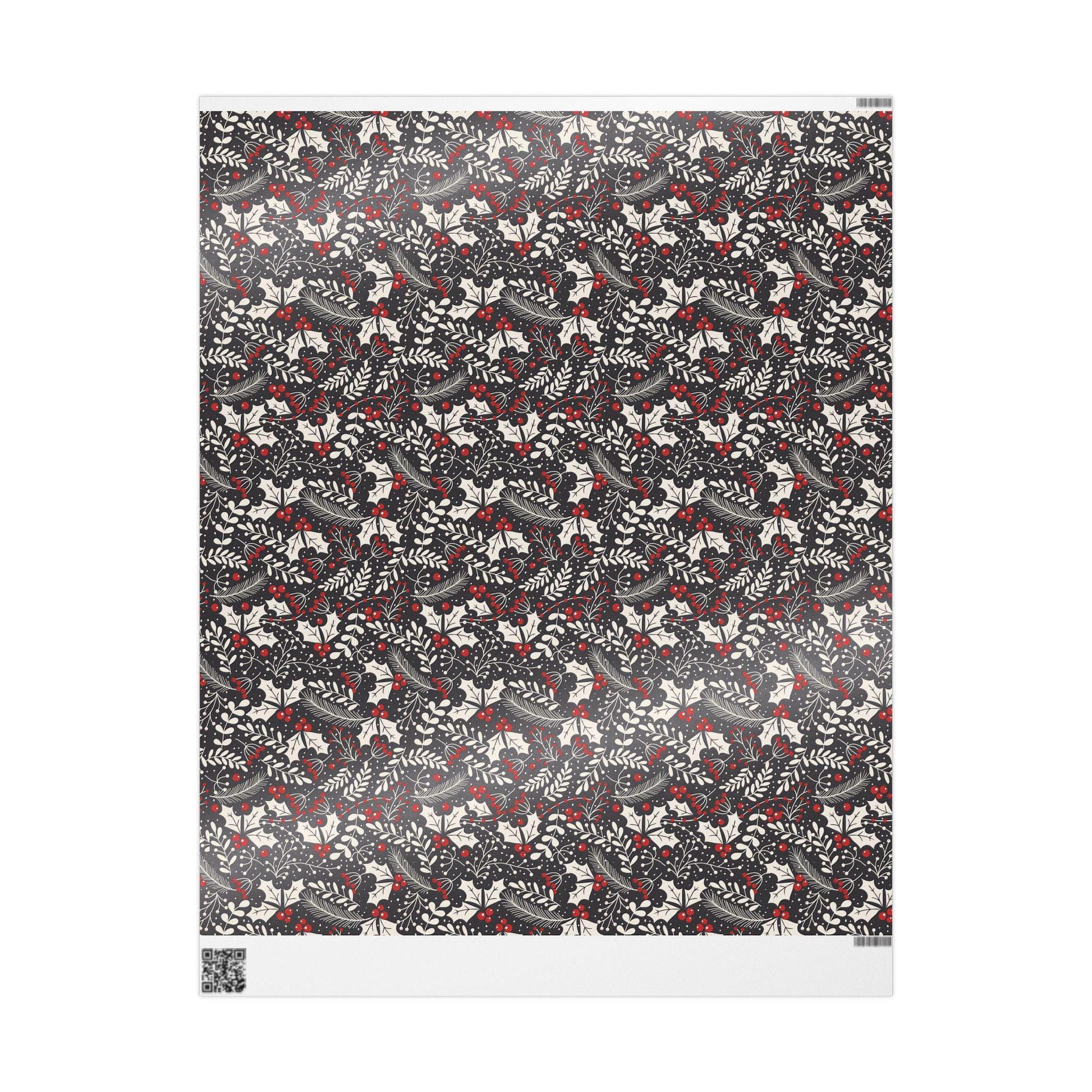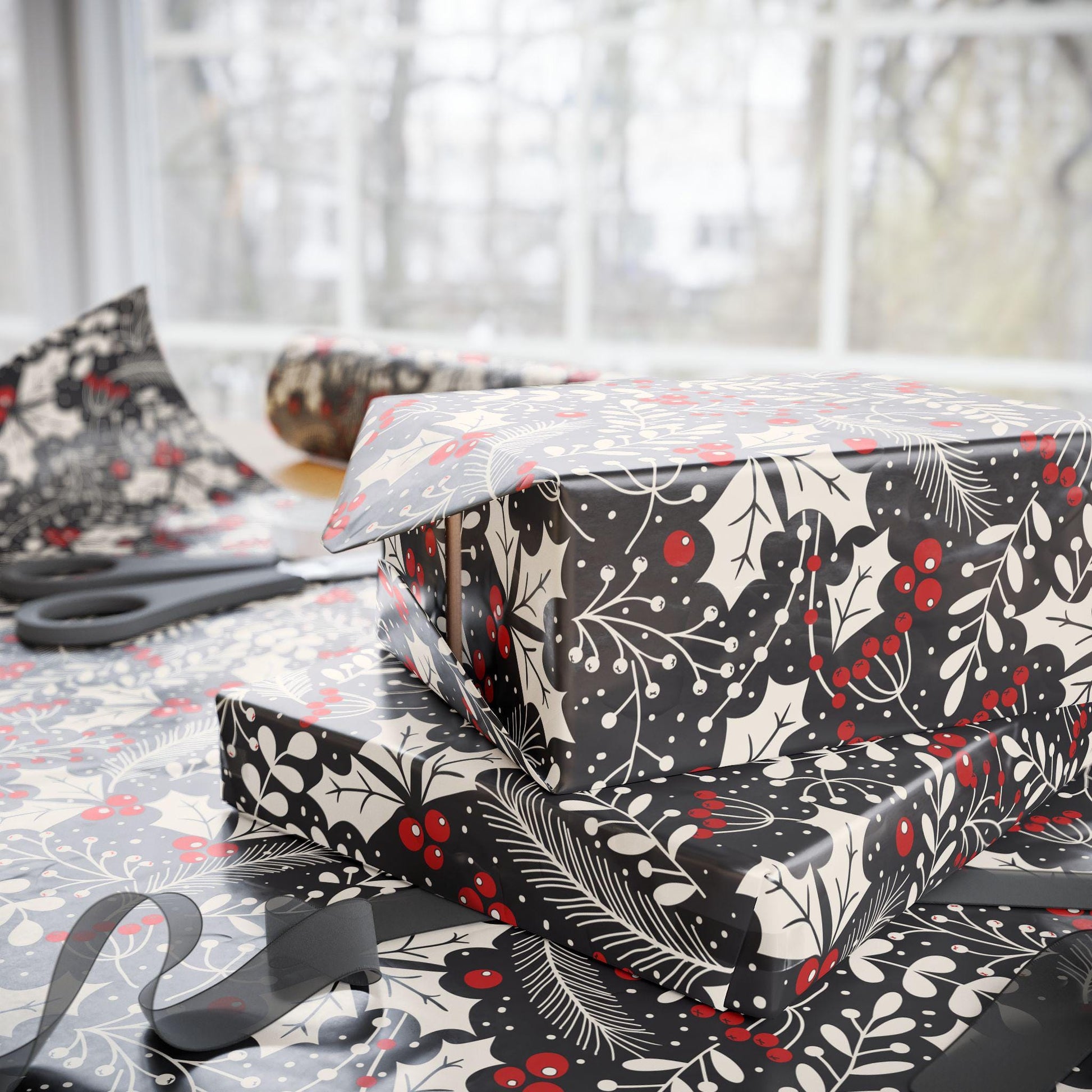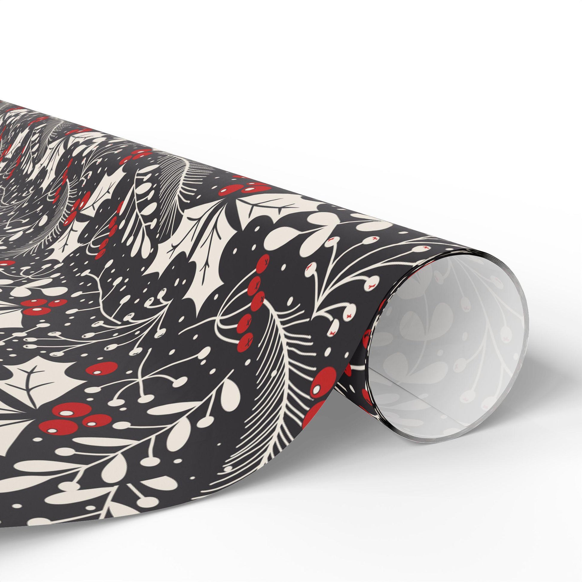 Unique Christmas Gift Wrap Papers -Black and white Holly Design -Vintage Gift Wrapping paper