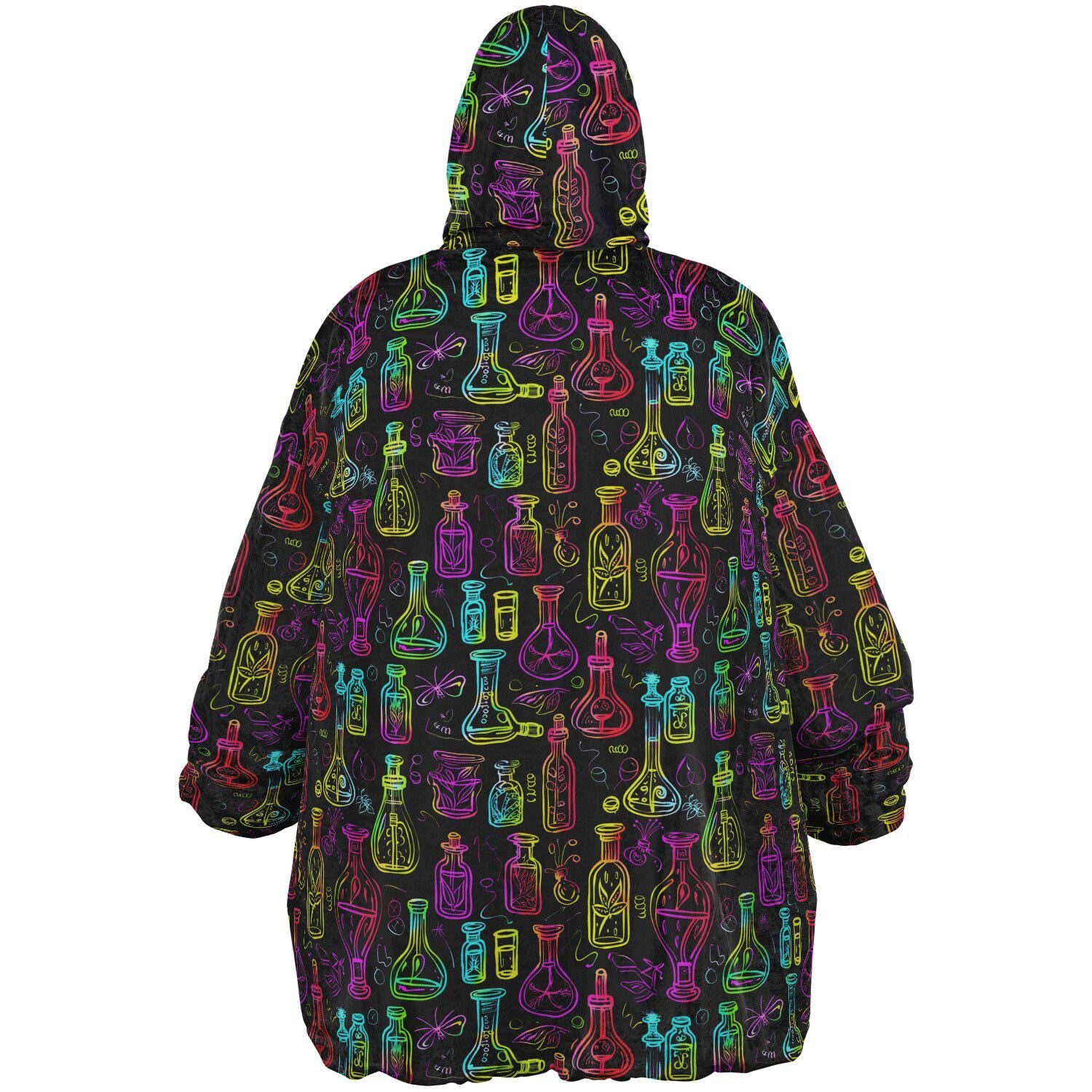 Unisex Neon Skulls Halloween Print Reversible Snug Hoodie,Festival Rave Party Wear,Oversized Double Sided Hoodie Blanket,Unique Gifts