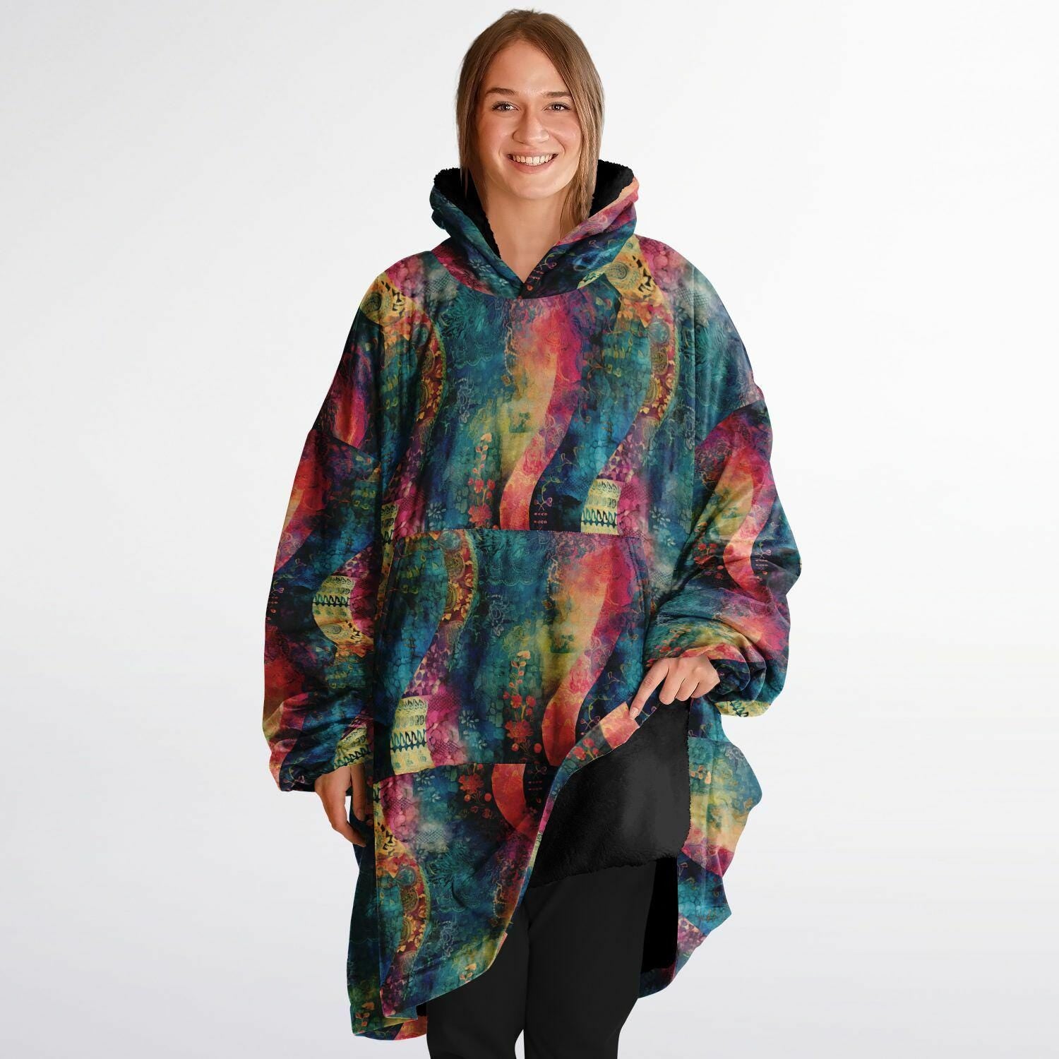 Unisex Psychedelic Rainbow All Over Print Snug Hoodie,Printed Hooded Blanket,Blanket Sleeves,Lounge Wear,Unique,Novelty Gifts,Christmas Gift