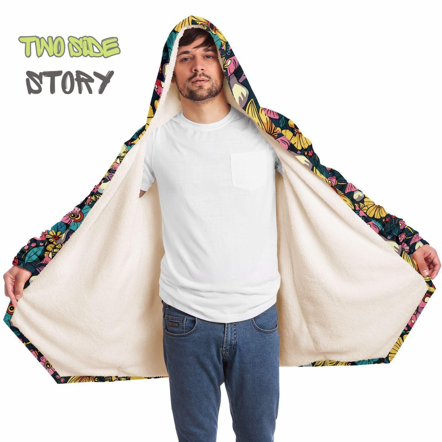 Unisex Vivid Colors EDM Festival Cape,Micro-fleece Psychedelic Mushrooms Hooded Cloak,Festival Rave Party Wear, Halloween Cape, Unique Gifts
