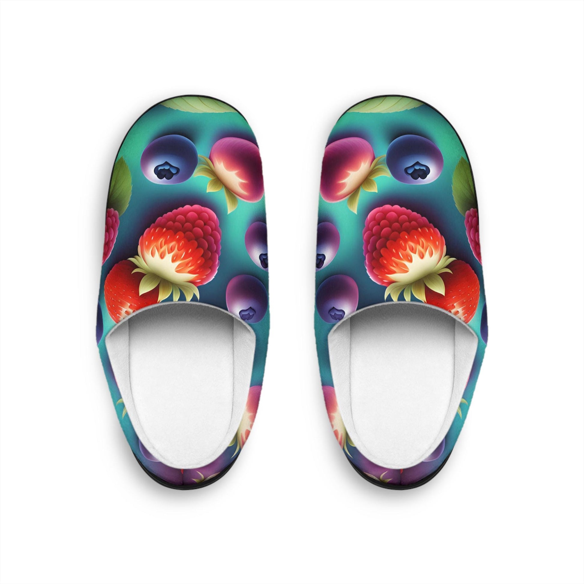 Veryberry Seafoamgreen Women's Slippersshoes Mixedberries Bluegreen Gradient Homeslipper Antiskid Black Rubbersole Fleece Slipper 3 Sizes
