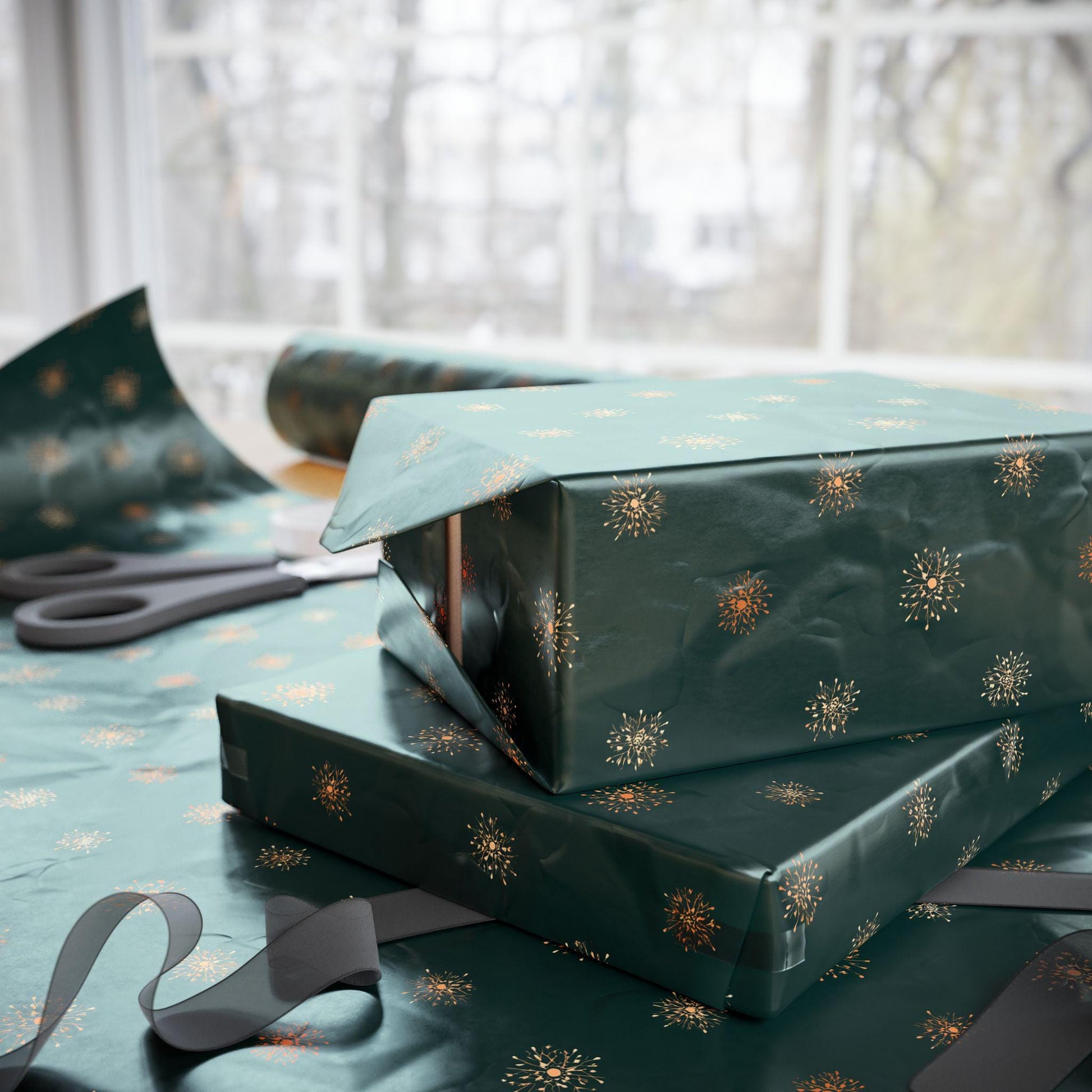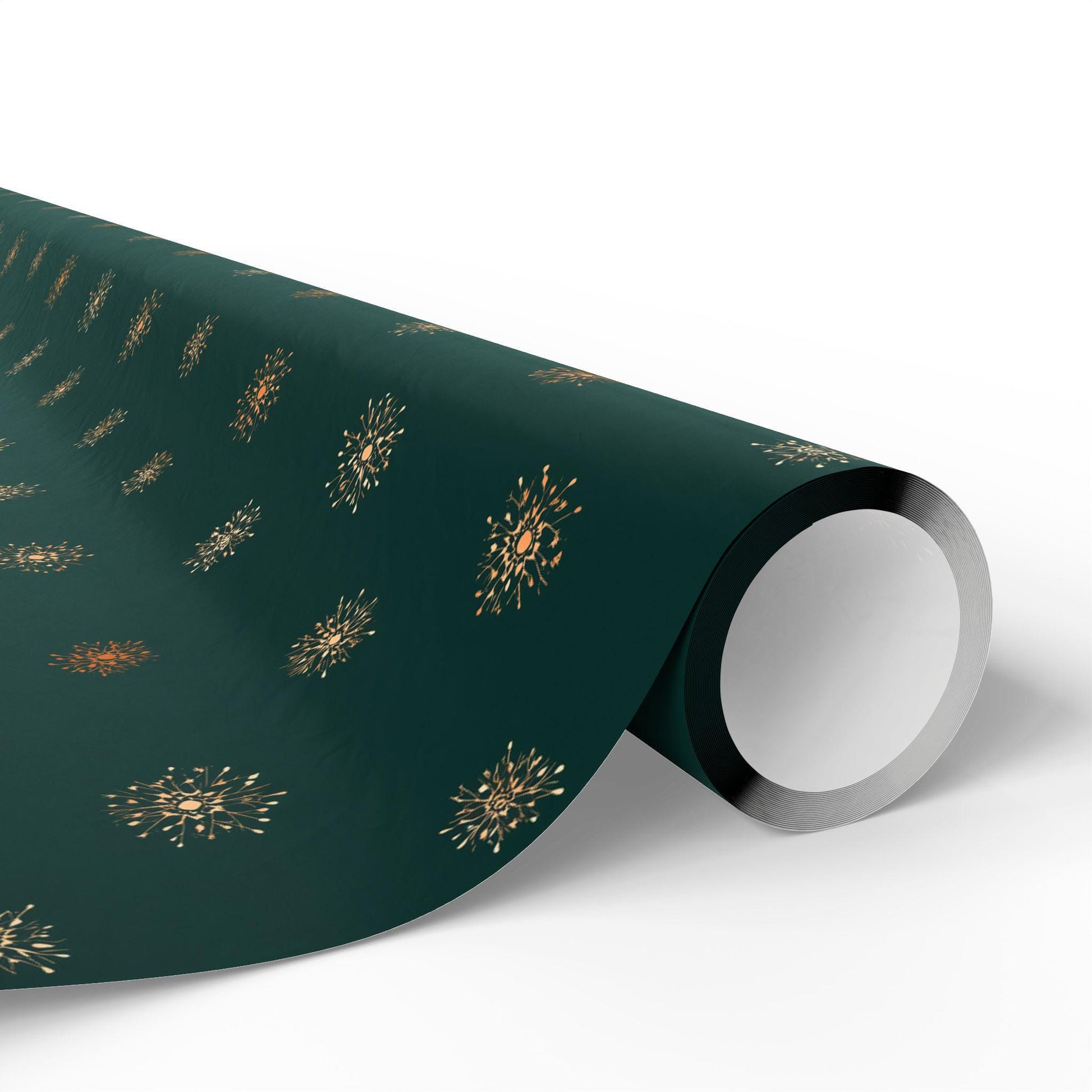 Vintage Christmas Green Gold Wrapping Paper Rolls- Christmas Gift Wrap Retro, Holiday Festive Gift Packaging, Festive Xmas Paper
