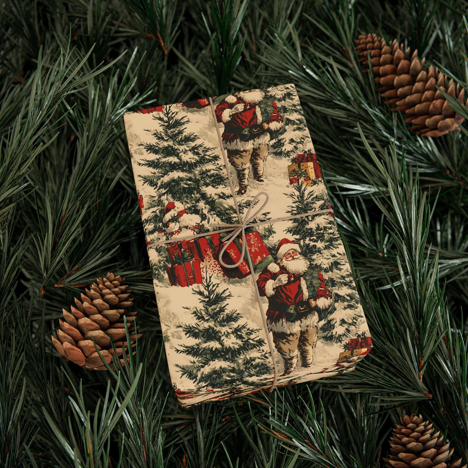 Vintage christmas wrapping paper Toile Gift Wrap Santa Holiday Gift Wrapping Paper Christmas Gift Wrap Xmas Wrapping Paper Roll