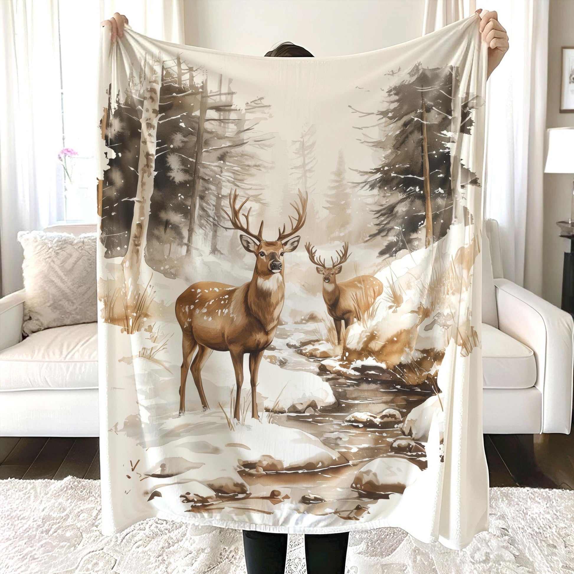 Vintage Deer Wilderness Scene Blanket, Retro Deer Blanket, Nineties Vintage Buck And Doe Deer Blanket, Deer Hunting Blanket, Hunting Season